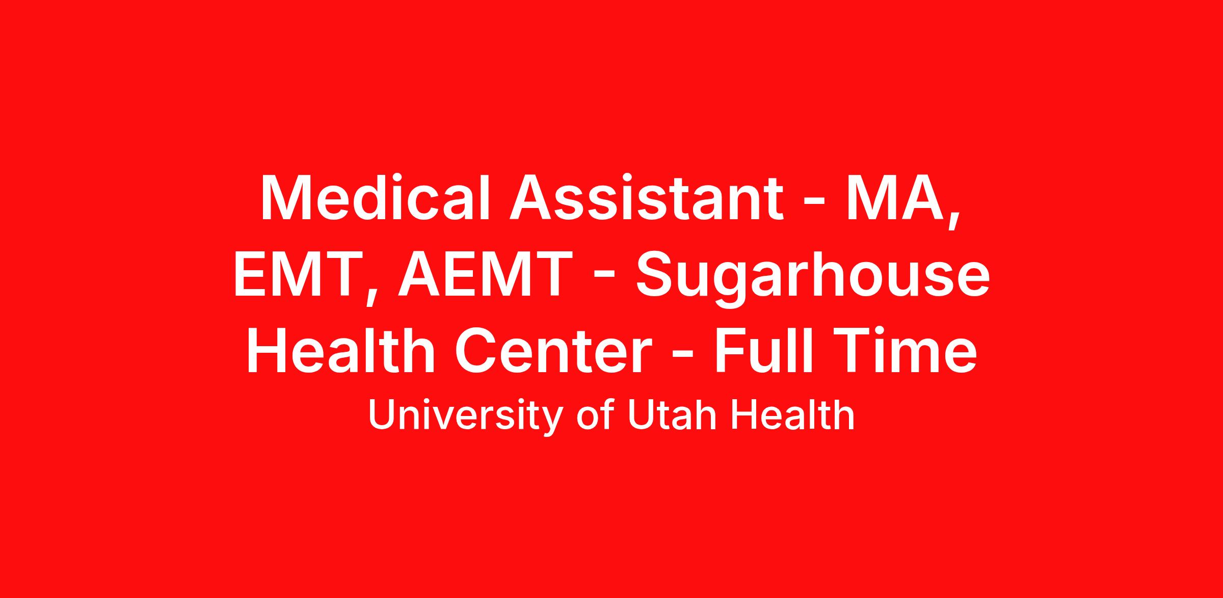 Medical Assistant - MA, EMT, AEMT - Sugarhouse Health Center - Full Time