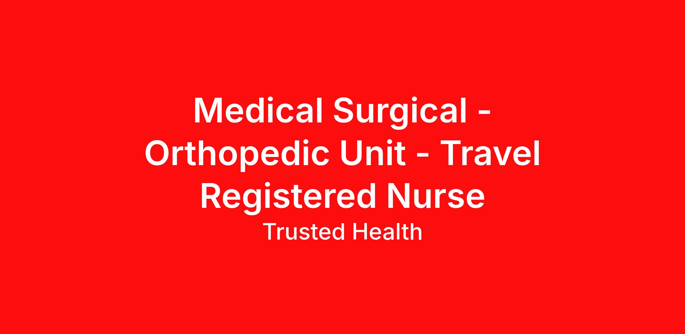 Medical Surgical - Orthopedic Unit - Travel Registered Nurse
