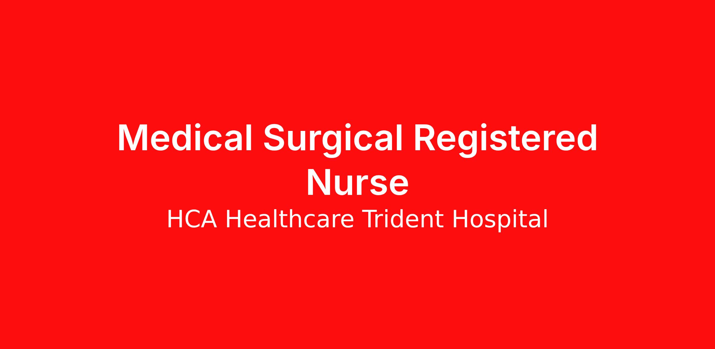 New Increased RN Rates $20,000 Sign On Bonus Introduction Do you want to be appreciated daily? Our nurses are celebrated for being on the front line, empathetic for patients. At Trident Medical Center our nurses set us apart from any other healthcare provider. We are seeking a Medical Surgical Registered Nurse to join our healthcare family. Benefits Trident Medical Center, offers a total rewards package that supports the health, life, career and retirement of our colleagues. The available plans and programs include: Comprehensive medical coverage that covers many common services at no cost or for a low copay. Plans include prescription drug and behavioral health coverage as well as free telemedicine services and free AirMed medical transportation. Additional options for dental and vision benefits, life and disability coverage, flexible spending accounts, supplemental health protection plans (accident, critical illness, hospital indemnity), auto and home insurance, identity theft protection, legal counseling, long-term care coverage, moving assistance, pet insurance and more. Free counseling services and resources for emotional, physical and financial wellbeing 401(k) Plan with a 100% match on 3% to 9% of pay (based on years of service) Employee Stock Purchase Plan with 10% off HCA Healthcare stock Family support through fertility and family building benefits with Progyny and adoption assistance. Referral services for child, elder and pet care, home and auto repair, event planning and more Consumer discounts through Abenity and Consumer Discounts Retirement readiness, rollover assistance services and preferred banking partnerships Education assistance (tuition, student loan, certification support, dependent scholarships) Colleague recognition program Time Away From Work Program (paid time off, paid family leave, long- and short-term disability coverage and leaves of absence) Employee Health Assistance Fund that offers free employee-only coverage to full-time and part-time colleagues based on income. Learn more about Employee Benefits Note: Eligibility for benefits may vary by location. At Trident Medical Center, our nurses play a vital part. We know that every nurse’s path and purpose is unique. Do you want to create your own personal career path in nursing? HCA Healthcare is your career destination! Our scale makes it possible for nurses to create the career path that fits their life – for life – and empowers their passion for patient care. Apply today for our Medical Surgical Registered Nurse opportunity. Job Summary and Qualifications As a Registered Nurse, you will be responsible for delivering high-quality, patient-centered care in line with the requirements of the department and the standards of practice for the relevant state and specialty. Collaborating with medical providers and the care team, you will provide personalized, comprehensive, and compassionate care, following established nursing models such as "Assess, Perform, Teach, and Manage." You will also act as an advocate for patients, families, and caregivers, embodying the organization's vision, mission, and values to ensure an outstanding patient experience and positive clinical outcomes. What you will do in this role: Assess the patient's condition during admission and each scheduled shift, promptly identifying and reporting any changes in patient status. Perform procedures, monitoring, or other functions as ordered by the medical provider(s), and ensure thorough and timely documentation of care administration in the patient's medical record. - Administer prescribed medications, monitor the patient for therapeutic response, and take appropriate action in the event of an unintended response to the medication. Provide exceptional care by responding promptly to patient requests, proactively anticipating patient needs, and resolving them. Educate patients, families, and caregivers about the patient's medical condition, treatment plan, medications, possible side effects, and follow-up measures, ensuring complete understanding by translating complex medical terminology. What qualifications you will need: Associate Degree in Nursing or RN Diploma Bachelor's Degree in Nursing Preferred Currently licensed as a registered professional nurse in the state(s) of practice and/or has an active compact license, in accordance with law and regulation Basic Cardiac Life Support must be obtained within 30 days of employment start date Trident Health is a 445-bed HCA Healthcare hospital system comprised of two acute care hospitals, Trident Medical Center and Summerville Medical Center and three freestanding emergency departments, Brighton Park Emergency, Moncks Corner Medical Center and Centre Pointe Emergency. We provide care to nearly 375,000 South Carolina Low country residents each year. Every day Trident Health's more than 2,600 employees, more than 500 physicians and more than 130 volunteers are dedicated to fulfilling our mission. "The great hospitals will always put the patient and the patient's family first, and the really great institutions will provide care with warmth, compassion, and dignity for the individual."- Dr. Thomas Frist, Sr. HCA Healthcare Co-Founder Join a family that cares about every stage in your career! We are interviewing candidates for our Medical Surgical Registered Nurse opening. Apply today and a member of our Talent Acquisition team will reach out. We are an equal opportunity employer. We do not discriminate on the basis of race, religion, color, national origin, gender, sexual orientation, age, marital status, veteran status, or disability status.