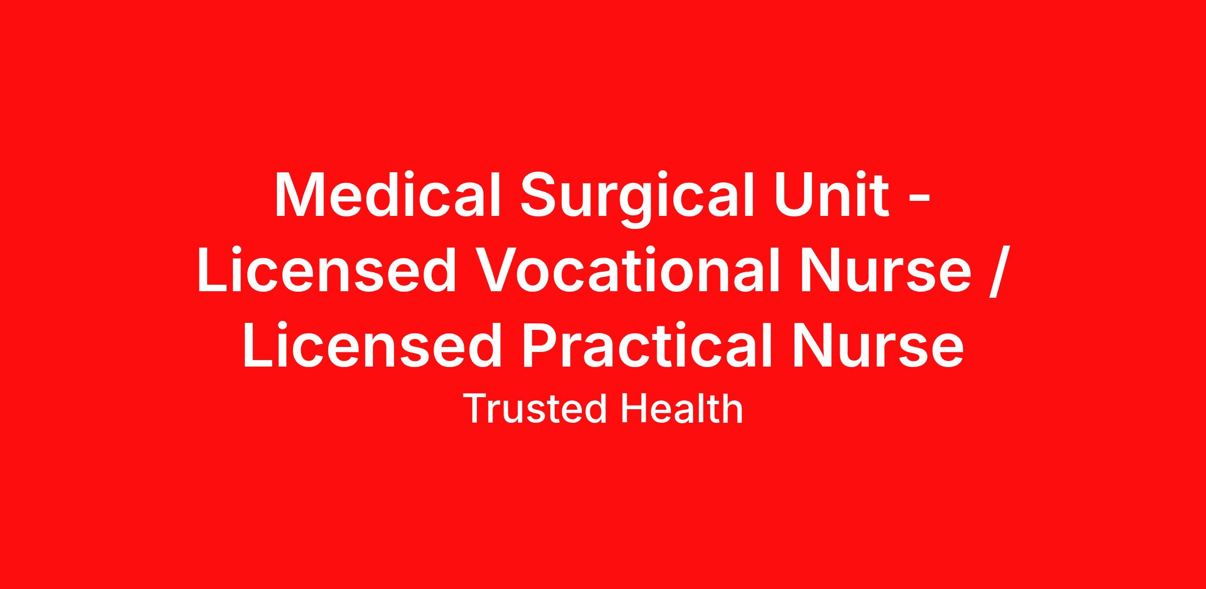 Medical Surgical Unit - Licensed Vocational Nurse / Licensed Practical Nurse