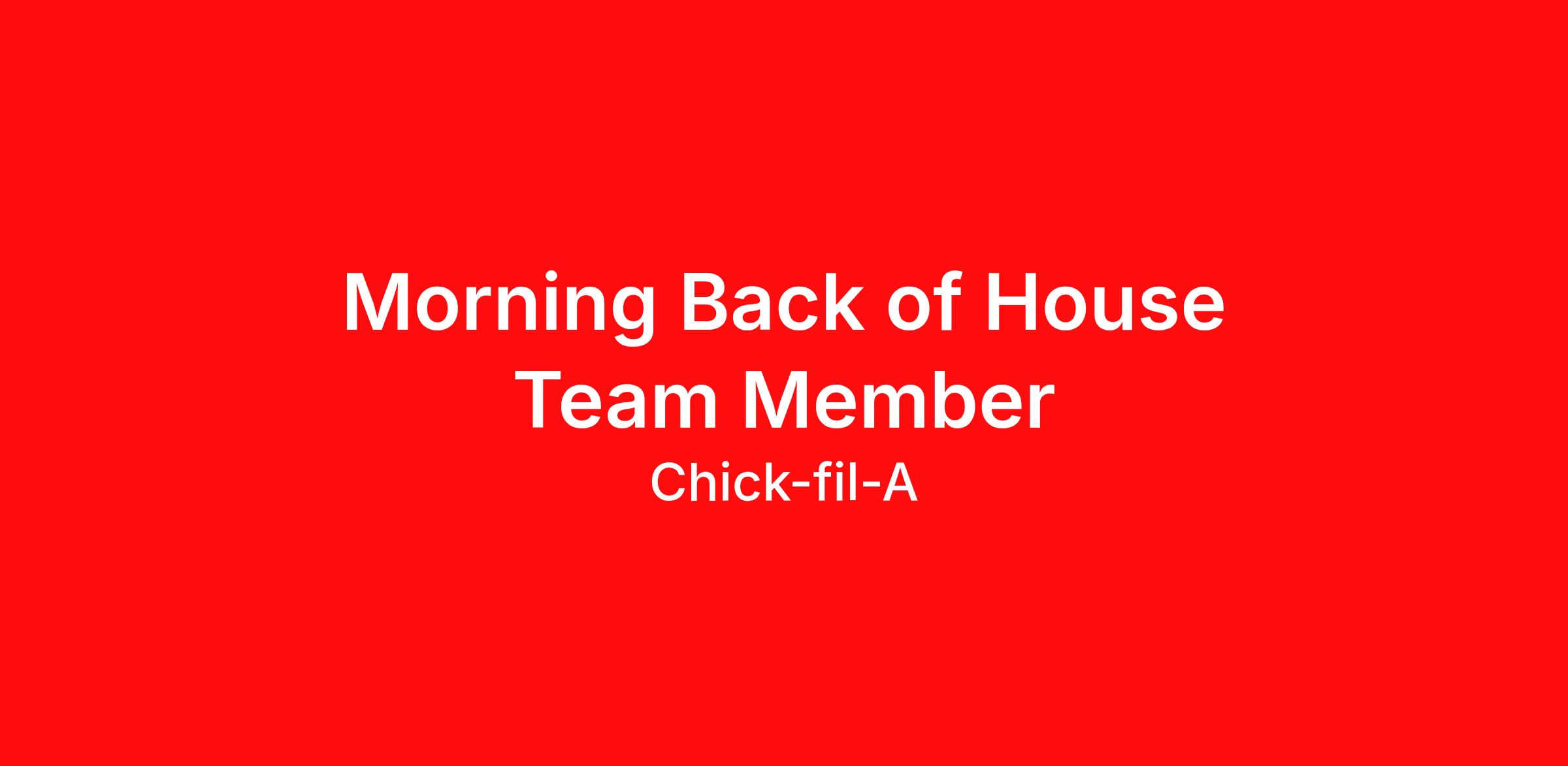 At Chick-fil-A, the Team Member role is more than just a job, it's an opportunity. In addition to working directly for an independent Operator, team members gain life experience that goes far beyond just serving a great product in a friendly environment. Chick-fil-A is a great opportunity for people of all ages and backgrounds, and no experience is necessary. As a BOH Team Member, you will support the kitchen team, assemble food & drink orders quickly and accurately, and ensure each guest leaves with a smile. We are looking for friendly, enthusiastic people who enjoy serving customers. We will teach you everything else you need to know!