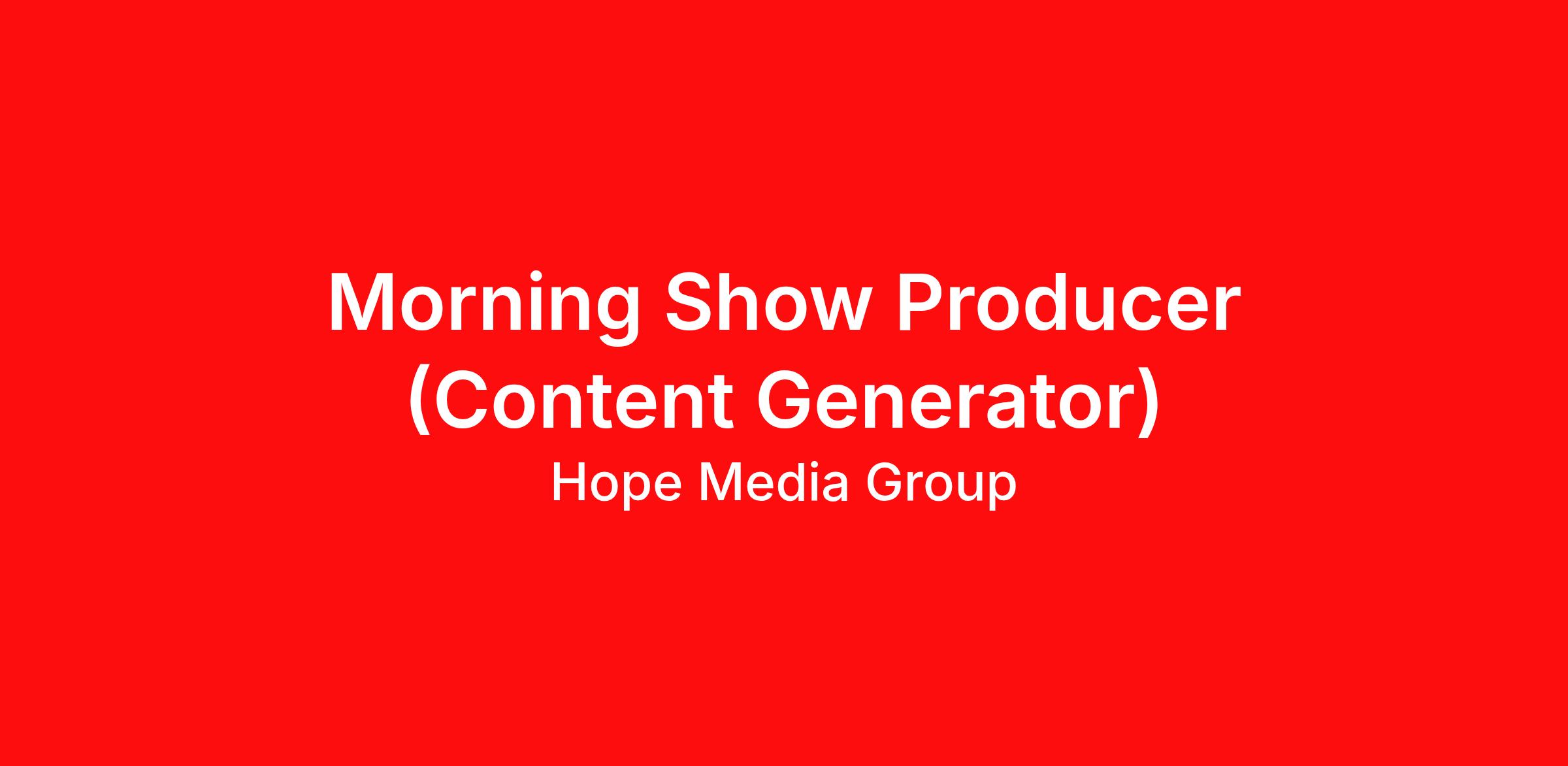- Ability to represent the mission and values of Hope Media Group appropriately on air and in content.