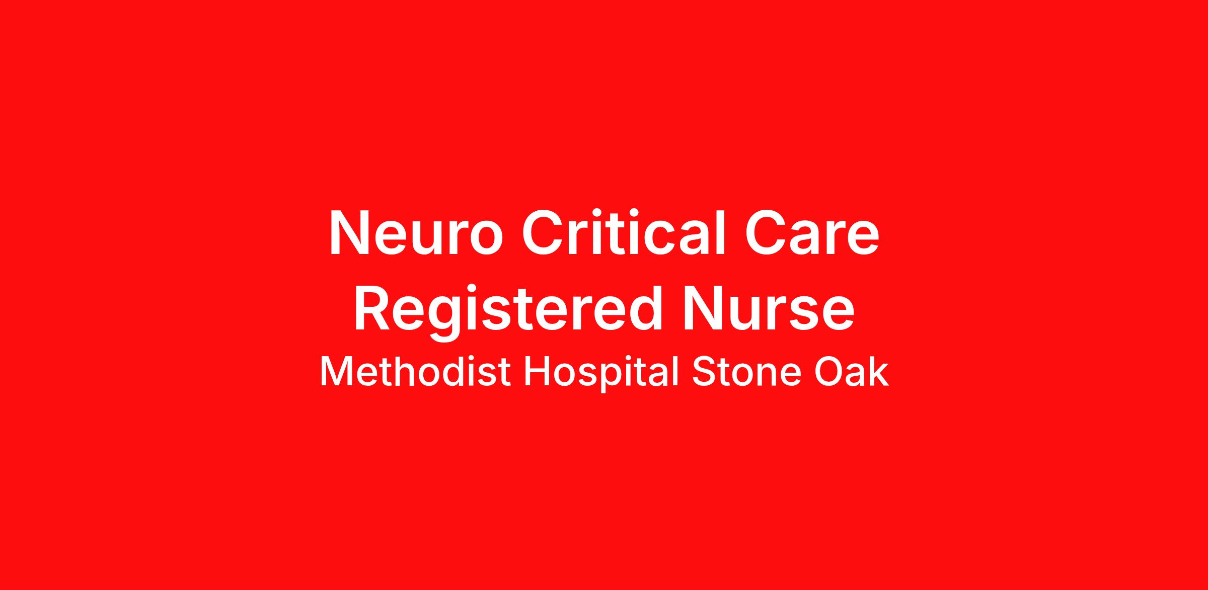 Stroke response times nearly half of the national average. Cutting-edge SPOT Technology that detects sepsis earlier than the human eye. An Enhanced Surgical Recovery program that reduces opioid prescriptions and post-surgical readmissions. As a national learning health system, we're transforming care delivery, advancing clinical outcomes, and empowering our nursing teams in a collaborative effort to give people a healthier tomorrow. Join us! Job Summary and Qualifications Are you a nurse with a passion for neuroscience and critical care? Our 14-bed Neuro Critical Care Unit (NCCU) is a cutting-edge, high-acuity environment specializing in the management of critically ill neurological and neurosurgical patients. NCCU plays a vital role in providing advanced care for stroke, spinal cord injuries, lumbar drains, seizures, and other complex neurological conditions. Why Join Our Neuro ICU? Expert-Level Care: Work in a Primary Stroke Center, providing rapid, life-saving interventions, including mechanical thrombectomy, continuous EEG monitoring, and advanced neuroimaging. State-of-the-Art Technology: Utilize intracranial pressure monitoring, targeted temperature management, and advanced hemodynamic support in a specialized neurocritical care setting. Interdisciplinary Team Collaboration: Partner with intensivists, neurosurgeons, stroke specialists, respiratory therapists, and rehabilitation teams to optimize patient outcomes. Professional Growth: Access ongoing education in neurocritical care nursing, stroke management, and advanced neurological assessments, with opportunities for certification (CNRN, SCRN). Your Role in the Unit: Provide expert care for patients with acute ischemic stroke, hemorrhagic stroke, subarachnoid hemorrhage, traumatic brain injury (TBI), status epilepticus, and post-neurosurgical recovery. Perform frequent neurological assessments, monitor for signs of deterioration, and intervene rapidly to prevent secondary brain injury. Manage advanced therapies, including ventilators, continuous EEG, and vasoactive medications. Educate patients and families on neurological conditions, rehabilitation expectations, and recovery pathways. What qualifications you will need: Graduate of an accredited diploma, associates, or baccalaureate degree registered nursing program. Minimum of six (6) months of clinical experience as a licensed Registered Nurse required One (1) year of critical care experience as a licensed Registered Nurse preferred Current Registered Nurse License in the State of Texas or Multi-State Compact License (Employees with RN Compact License are required to obtain Texas RN License within 90 days of hire date) Current American Heart Association BLS Certification Benefits Methodist Hospital Stone Oak, offers a total rewards package that supports the health, life, career and retirement of our colleagues. The available plans and programs include: Comprehensive benefits for medical, prescription drug, dental, vision, behavioral health and telemedicine services Wellbeing support, including free counseling and referral services Time away from work programs for paid time off, paid family leave, long- and short-term disability coverage and leaves of absence Savings and retirement resources , including a 401(k) Plan with a 100% match on 3% to 9% of pay (based on years of service), Employee Stock Purchase Plan, flexible spending accounts, preferred banking partnerships, retirement readiness tools, rollover support and financial wellbeing counseling Education support through tuition assistance, student loan assistance, certification support, dependent scholarships and a partnership with Galen College of Nursing Additional benefits for fertility and family building, adoption assistance, life insurance, supplemental health protection plans, auto and home insurance, legal counseling, identity theft protection and consumer discounts Learn more about Employee Benefits Note: Eligibility for benefits may vary by location. Methodist Hospital Stone Oak is equipped with the most modern technology available. With over 280 beds, services include emergency care, general surgery, obstetrics and gynecology, neonatology, oncology, neurosurgery, orthopedics, and acute rehab services. Methodist Hospital Stone Oak is accredited by the Joint Commission as a Primary Stroke Center and Chest Pain Center. The stroke rehabilitation program has received the Joint Commission's Gold Seal of Approval® for Disease-Specific Care Certification of Stroke Rehabilitation. We belong to the Texas Institute for Robotic Surgery. Our surgeons and technology offer minimally invasive options to patients. Surgeons from around the country come to train under our world class team. The hospital has been recognized by Leapfrog’s Hospital Safety Grade A and by Modern Healthcare as one of the Top 100 Best Places to Work in Healthcare. We have also been recognized as a Joint Commission Top Performer on Key Quality Measures®. Finally, by Medicare.gov as 1 in San Antonio and 6 in the entire nation. The hospital is 1 of only 102 hospitals to receive Medicare.gov’s 5-star rating. Join our team to be part of the innovation. "The great hospitals will always put the patient and the patient's family first, and the really great institutions will provide care with warmth, compassion, and dignity for the individual."- Dr. Thomas Frist, Sr. HCA Healthcare Co-Founder Join a family that cares about every stage in your career! We are interviewing candidates for our Neuro Critical Care Registered Nurse opening. Apply today and a member of our Talent Acquisition team will reach out. We are an equal opportunity employer. We do not discriminate on the basis of race, religion, color, national origin, gender, sexual orientation, age, marital status, veteran status, or disability status.
