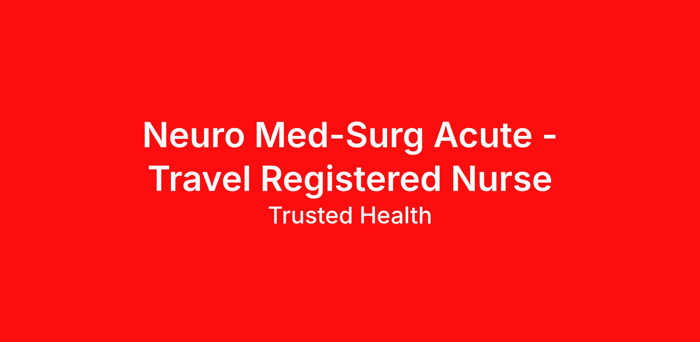 Trusted is seeking an experienced nurse for this exciting travel nursing assignment. Trusted has streamlined the travel nursing experience by enabling nurses to apply directly to jobs without the need for recruiters. This unique approach provides more transparency, eliminates pesky calls from recruiters, and puts more money in your pocket. Join the thousands of nurses across the country who have already made the switch to a more modern way to work. Experience: • 24 months of role experience is required with some in the last 12 months. • Must have at least 12 months of Medical Surgical Unit experience with 12 months within the past 3 years. • Travel experience is required from any number of months. • Trauma Level 1 experience is required from any number of months Requirements: • Candidates must have a Illinois license (required for submission). • This role may require floating to additional units and locations • Local & travel allowed. Candidates living • Flu vaccination required after submission. Religious, medical, and personal declinations accepted. • 12 months gap required between for Staff at Program: Medical Solutions Plus Program - OSF HealthCare and no current placement allowed at Program: Medical Solutions Plus Program - OSF HealthCare. Pre-employment modules may be required for this role. Please upload any certifications or health documents you have to your profile to expedite your on-boarding process. Additional Details: Required Skills/Experience: Must have prior experience working on a dedicated neuro unit. Shift & Scheduling: Weekend Requirement: Every other weekend, Saturday and Sunday are considered the weekend both shifts. Holiday Requirement: Every other. Floating Requirements: Float in rotation with rest of staff. General unit traveler floats to general unit floor - takes full team. If floated outside of general unit, in case of urgent need, would only do skills competent to do & be assigned with a nurse trained for that particular unit. References: At least one reference must be from the same unit/specialty as the job you’re applying to. 7 days maximum time off 1 reference from last 12 months (Charge/Lead reference type) - required for submission 1 reference from last 3 years (Any reference type) - required for submission Driver’s license required for submission Certifications: • NIHSS (NIH Stroke Scale) • BLS (Basic Life Support) Skills Checklist: Yes References: Yes License Type: registered License State: IL Certifications: Basic Life Support, NIH Stroke Scale Job Details Job Type: Travel Nurse/Patient: 1/5-6 Shift Type: Night Contract Date: 2026-03-30 Expected Length: 13 weeks Hours per Shift: 12 Shifts per Week: 3
