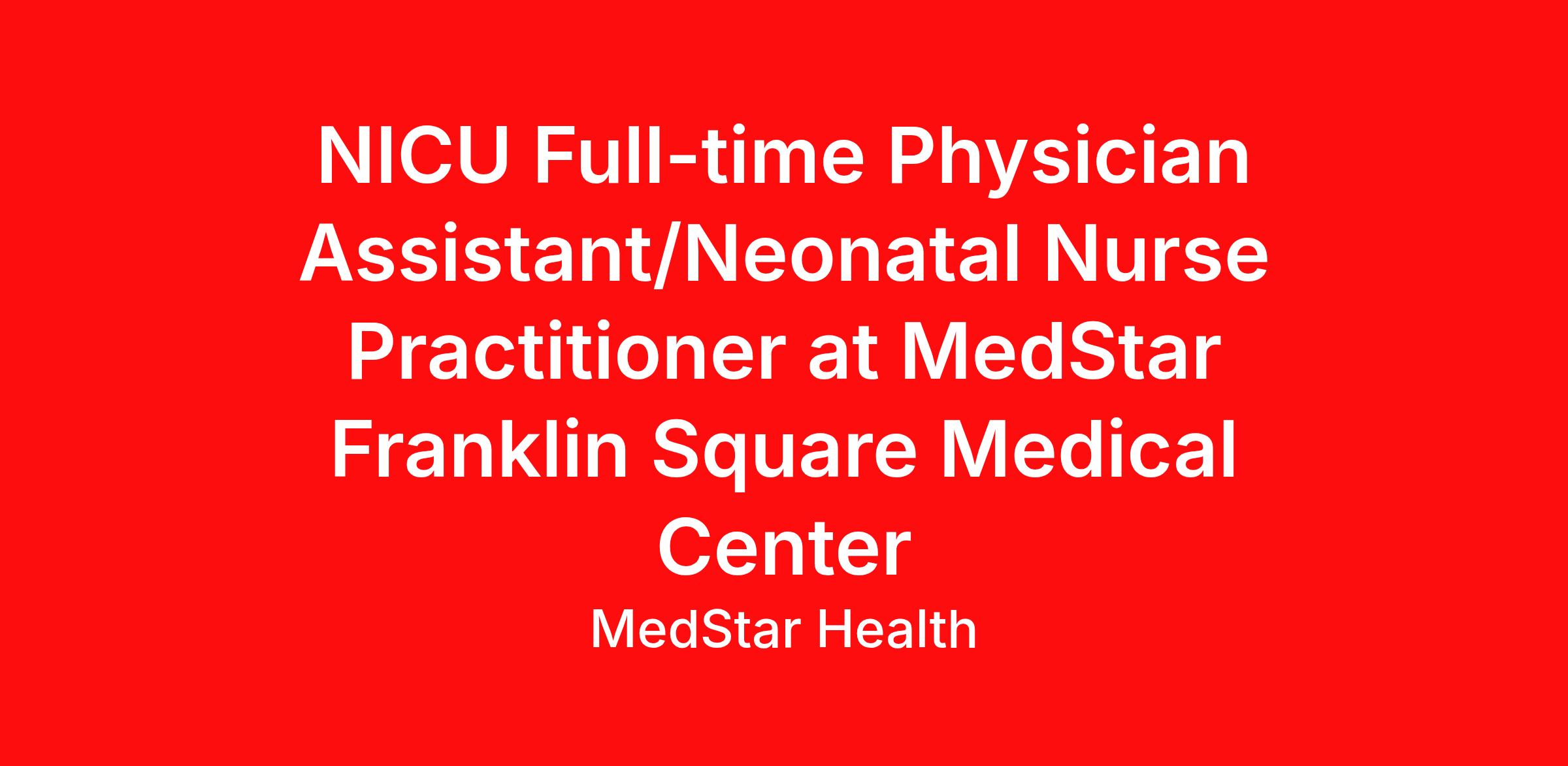 NICU Full-time Physician Assistant/Neonatal Nurse Practitioner at MedStar Franklin Square Medical Center