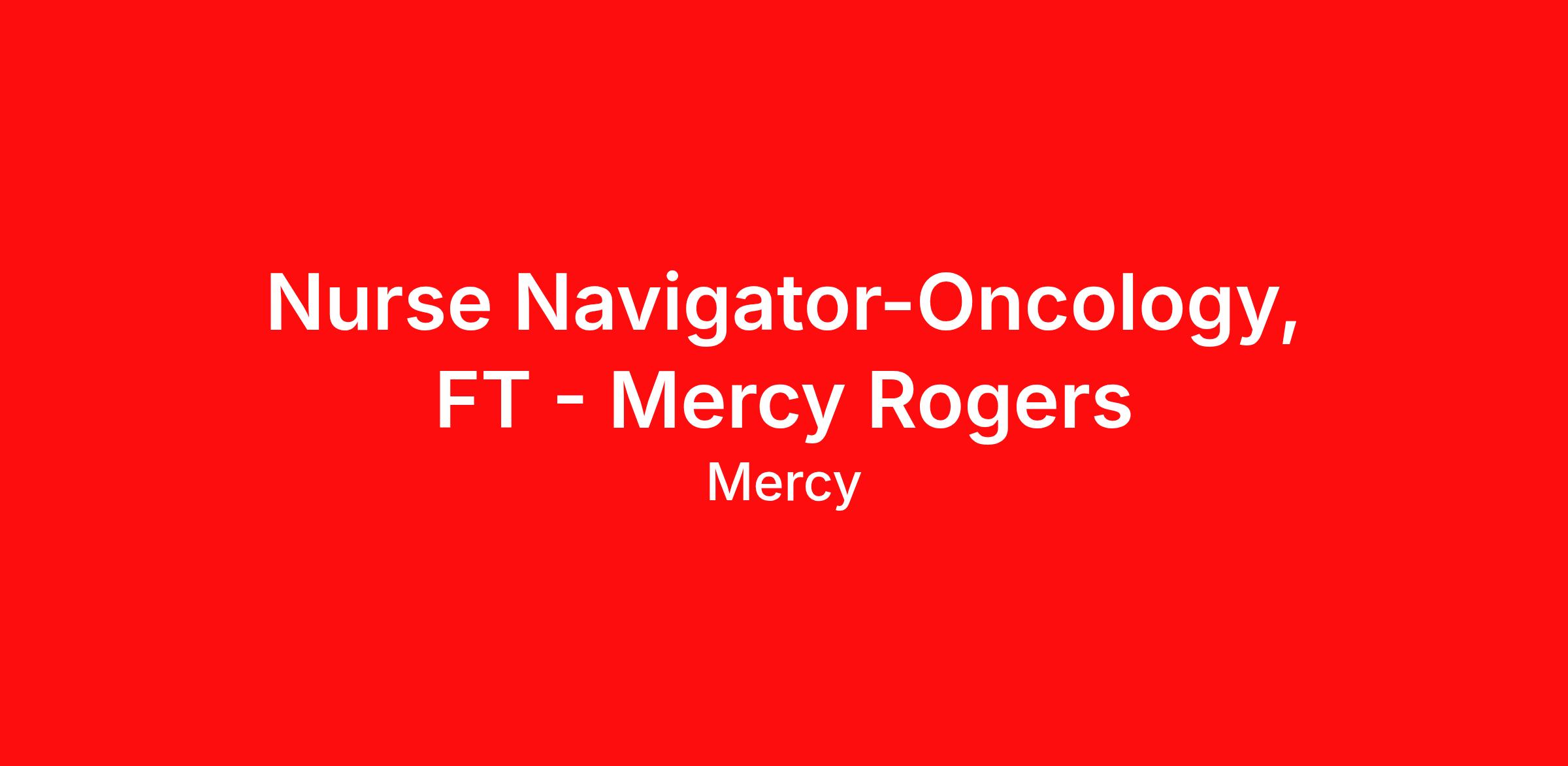 Nurse Navigator-Oncology, FT - Mercy Rogers