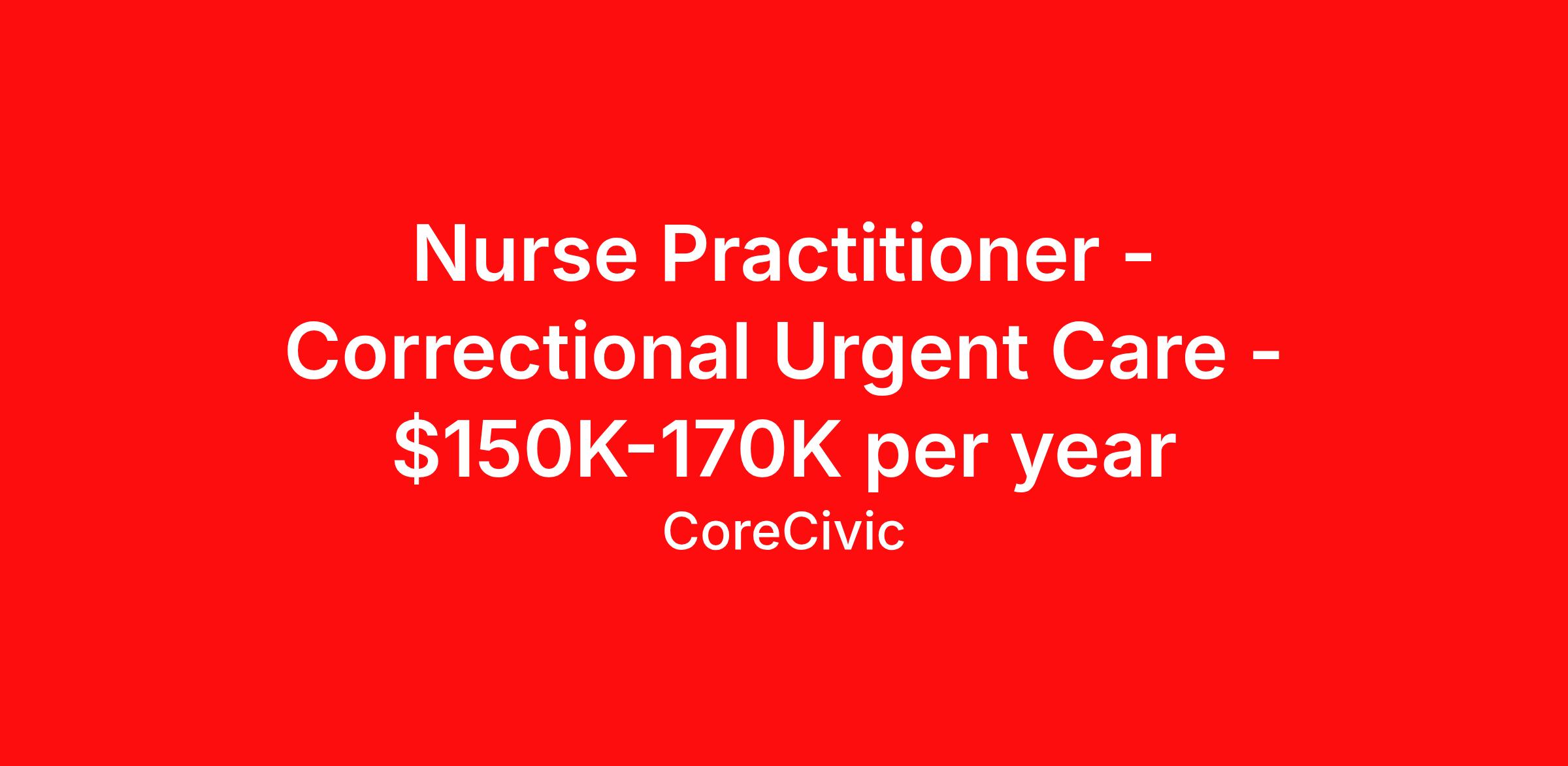 Nurse Practitioner - Correctional Urgent Care - $150K-170K per year