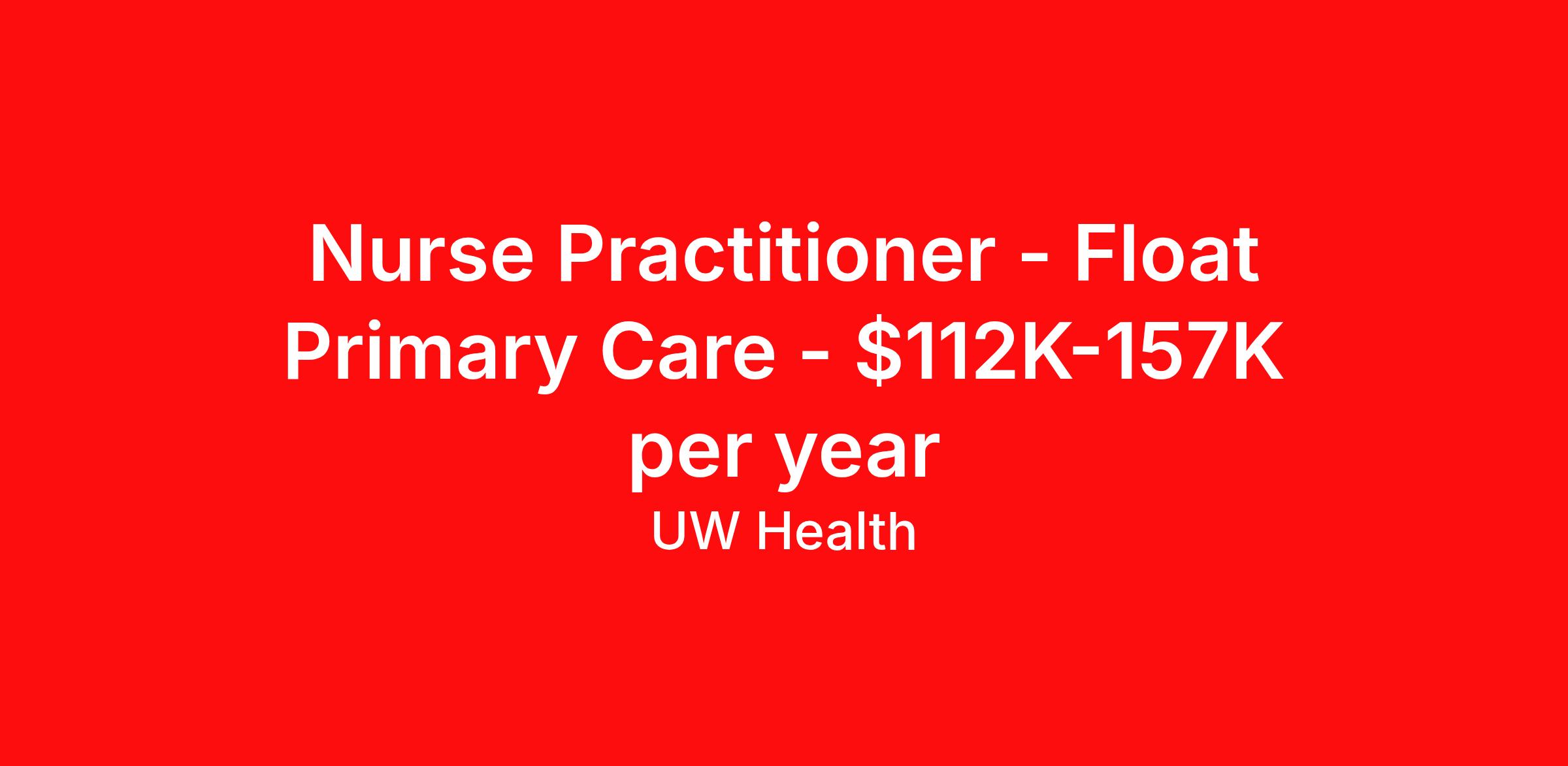Nurse Practitioner - Float Primary Care - $112K-157K per year