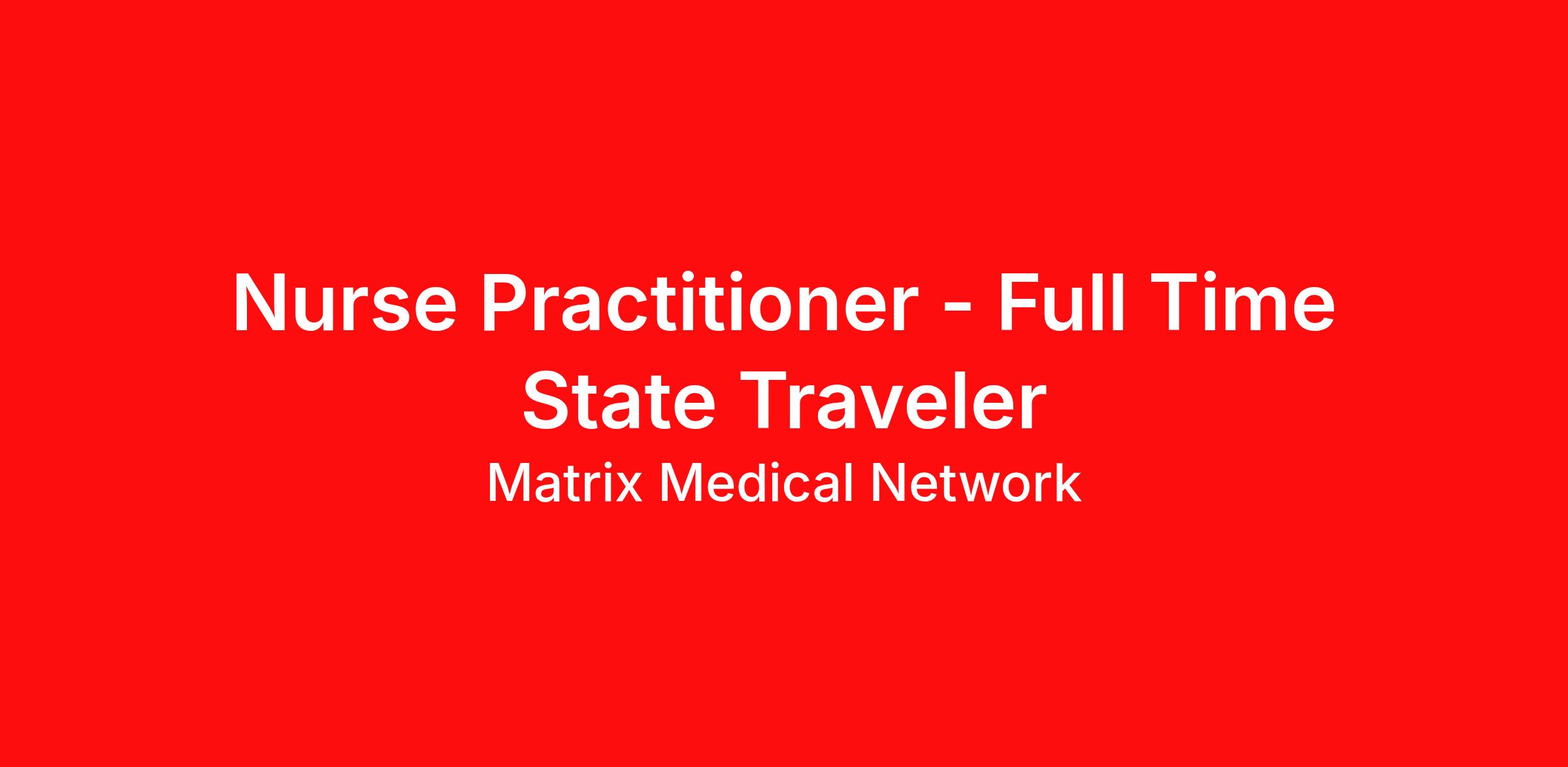 Overview: $7,500 Sign-On Bonus About Us Matrix Medical Network pioneered the first national in-home clinical network, and today we’re an independent provider of comprehensive health assessments serving people across the nation. We deliver exceptional, personalized care that improves health, lowers costs, and empowers people to live their best lives. With deep roots in clinical assessment and care management services, our national network of clinicians breaks through traditional barriers to care by meeting those members wherever they call home. We help older adults and other at-risk individuals enjoy a better quality of care, experience improved health outcomes, and identify chronic conditions that may otherwise go undiagnosed. Our job opportunities allow you to leverage your expertise and compassion to make a direct impact on the health and well-being of others. Join our team and be rewarded with competitive base plus incentive compensation and benefits while making a difference in the community! Responsibilities: About the Role During a visit that can last up to one hour, Matrix providers review and observe a member’s current health, medical history, medication adherence, social environment and other risks. This provides unmatched insight into a member’s overall health and well-being that can be difficult to capture during routine office visits. The Matrix Comprehensive Health Assessment (CHA) helps to improve quality of care and allows us to potentially close multiple care gaps with a single visit. Our providers: Conduct adult / geriatric assessments to include medical history, diagnosis and treatment, health education, physician referrals, case management referrals, follow-up and clear documentation according to Matrix guidelines and protocols Administer and order point of care and lab-based testing as needed Work with physicians, case managers, social workers, family members, key caregivers, and ancillary medical personnel as appropriate Collaborate with Primary Care Physician (PCP) on patient education and follow up as necessary Provide services at the member’s place of residence which can be in their homes or Skilled Nursing Facilities Benefits of Working at Matrix Consistency – Although we conduct assessments Sunday – Saturday from 8 am – 7 pm, our full-time (FT) providers typically work Monday – Friday from 8:00 to 5:30. Competitive Pay – Earn an annual base salary ranging from $105,500 - $168,400 based on market compensation analysis and experience. Incentive Program – Eligible for FT Clinician Traveler Incentive Plan in support of leaving no patient behind which includes a monthly (uncapped) incentive opportunity. In 2025, those who received an incentive payout averaged $500 per month ($6,000 annually). Benefits – Mileage reimbursement, medical, dental, vision, life insurance, PTO accrual, 401(k), paid holidays, continuing education time/reimbursement, and employee referral bonuses. Education and Support – We invest in YOU! In addition to comprehensive onboarding training we will assign you a preceptor, provide 1:1 feedback, and offer free access to earn continuing education online. Additional Licensure – Should business need exist; we will support you in obtaining additional state licensure and credentialing in neighboring states – or others you may want to visit while completing health assessments. Qualifications: Skills & Experience That Shine Master’s Degree or commensurate experience and satisfactory completion of NP licensure Current NP licensure in state of practice to include prescription authority or the ability to obtain prescriptive authority as needed AANP, AACN, or ANCC board certification in Adult, Adult Gerontology Primary Care, Adult Gerontology Acute Care, Family, Emergency, or Acute Care specialty Current BLS, ACLS or CPR certification 1 year of NP experience Able to travel up to 80-90% of the time for extended periods of time to include overnight travel and weekends across the assigned state and possibly neighboring states Valid state driver's license for the state of residence Automobile insurance coverage requiring for the state of residence (or ability to obtain) Bodily Injury: $100,000 per person/$300,000 per incident Property Damage: $50,000 Collision and comprehensive deductibles: $1,000 or less Strong computer skills and familiarity with employee health/medical record software Excellent verbal and written communication skills The Matrix Culture Leading With Empathy & Trust – We believe in each other, which empowers all of us to connect with purpose and transparency. We take action from a place of trusting our peers, and we always have each other’s best interests at heart. Diversity & Inclusion – The potential of our company is based on the diversity of experiences and backgrounds of everyone who works at Matrix. That’s why we’re proud of our diverse and talented team. Committed to Career Advancement – The strength of our company is in its people. We’re committed to career progression and fostering an environment where employees can grow and thrive. By investing in our clinical and corporate teams, we enhance individual capabilities and strengthen the organization. Matrix Medical Network is an Equal Employment Opportunity Employer. It is the policy of Matrix to provide equal employment opportunities without regard to race, color, religion, sex, gender identity or expression, pregnancy, age, national origin, age, disability, marital status, veteran status, sexual orientation, genetic information or any other protected characteristic under applicable law. It is also the policy of Matrix that qualified individuals with disabilities receive equal opportunity in regard to job application procedures, hiring, and all aspects of the employment process. Matrix is committed to the full inclusion of all qualified individuals. Consistent with the Americans with Disabilities Act (ADA) and applicable state and local laws, i