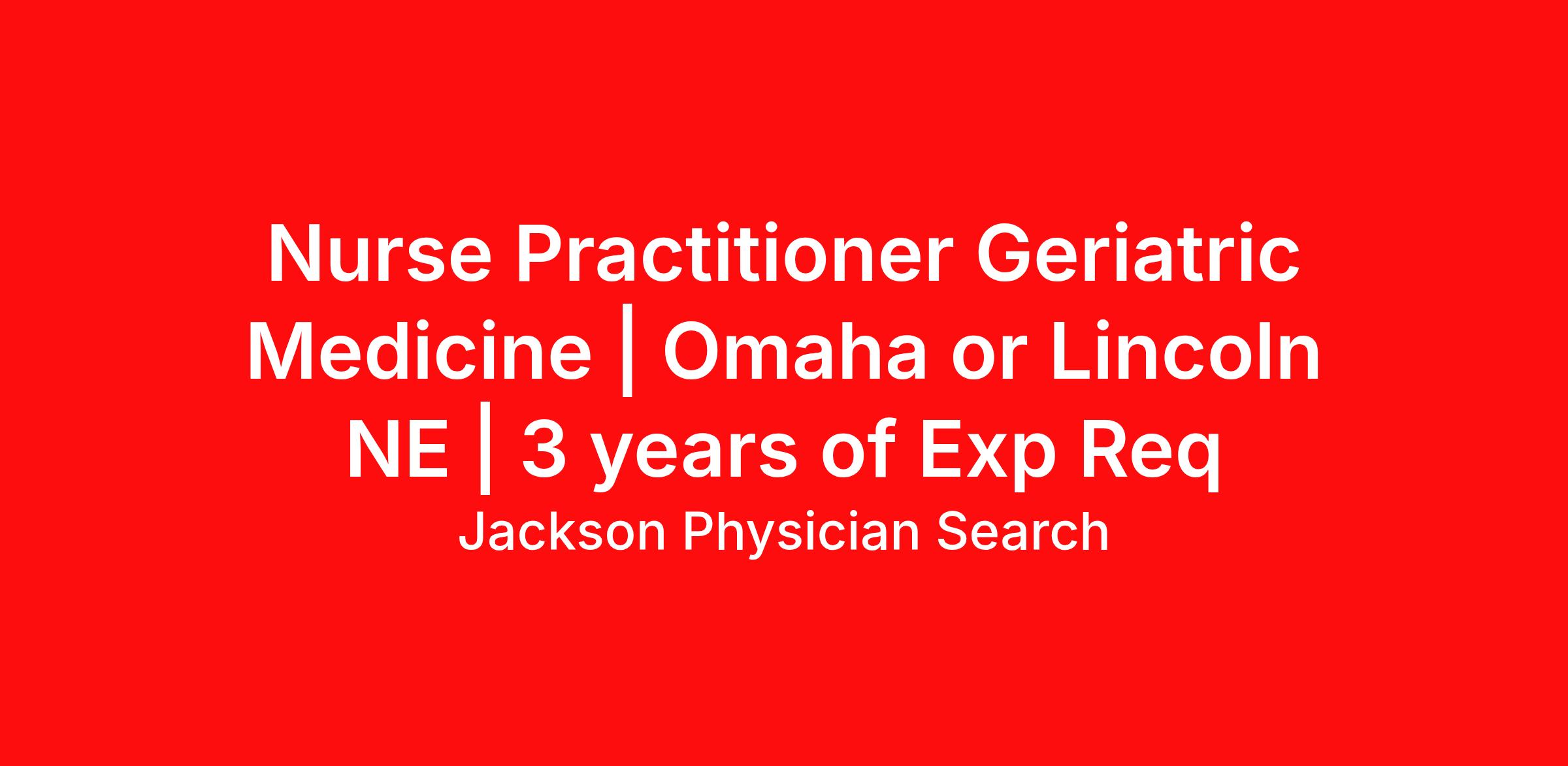 A value-based care organization is establishing a new outpatient practice in central Nebraska and is adding a Board-Certified Family or Adult Nurse Practitioner to its care team. The role is based in a newly opened facility and offers the opportunity to help shape clinical operations as one of the first providers in the region. • Outpatient Only, M-F. • Practice has a focus on longitudinal care for patients with complex medical needs. • Providers work within a multidisciplinary team. • Experience in Geriatrics, Home Care, or House call setting is preferred but not required. • Competitive Base Salary, Full Benefits, PTO, CME time plus allowance, sign-on bonus/ relocation negotiable. Community: • This city sits along the west bank of the Missouri River, where wide skies, tree-lined neighborhoods, and a visible downtown skyline define the city's layout. • Seasonal changes are distinct, with warm summers, crisp falls, and snowy winters shaping daily life. • Outside of the city center, the surrounding landscape opens into plains and rolling farmland, creating clear boundaries between the metro area and rural Nebraska while maintaining easy access to outdoor space. • Nebraska offers a lifestyle for anyone. With safe neighborhoods to raise or start a family in, schools that are top in the state, this city offers an abundance of amenities. To schedule an informational phone call to learn more, please contact: Camille Carter 720-470-4582 Text 303-376-5242 Direct ccarter@jpsearch.com Specialty: Nurse Practitioner Employment Type: Full Time
