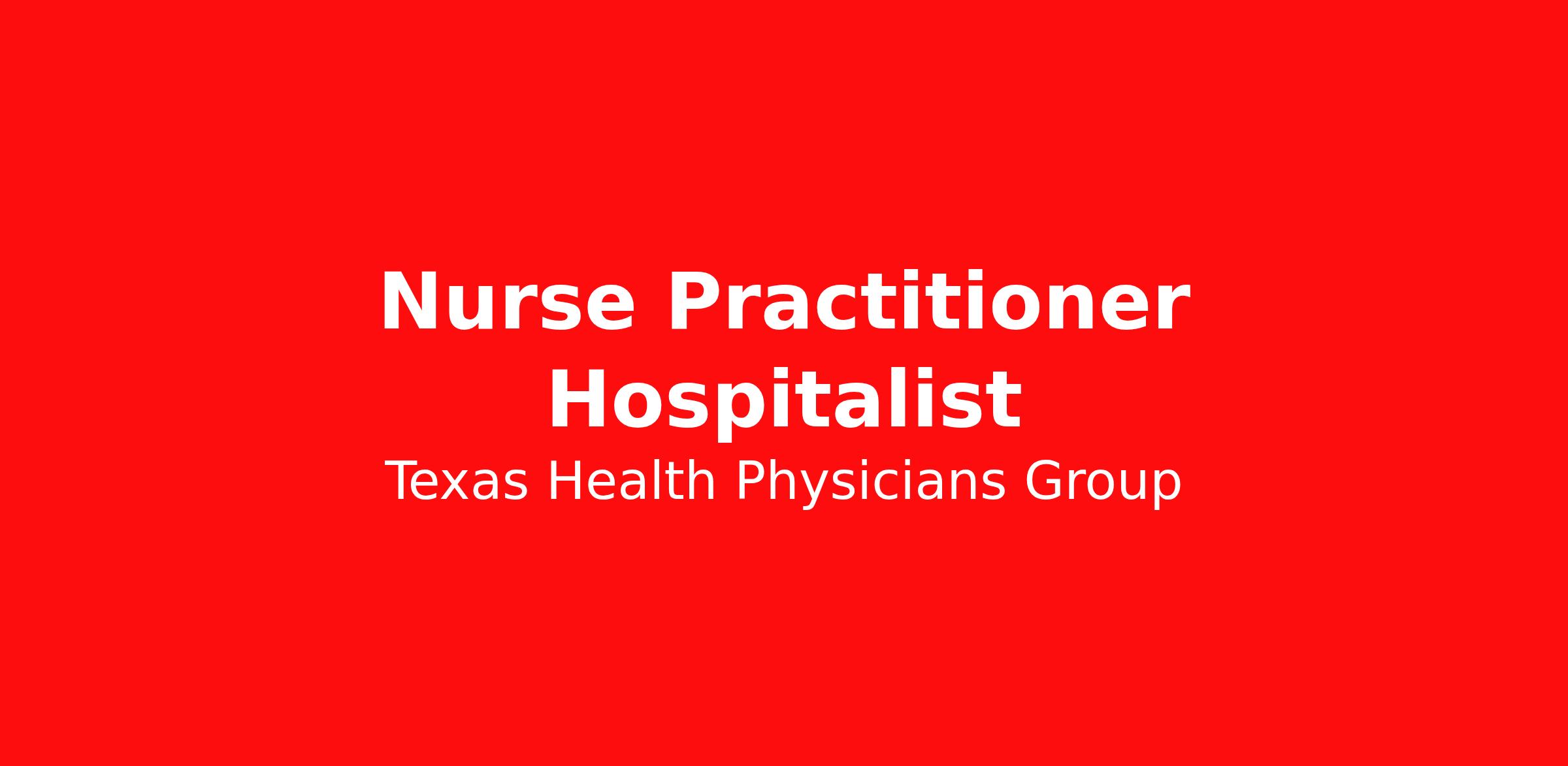 JOIN TEXAS HEALTH – Where Your Purpose Meets Our Mission DAY SHIFT HOSPITALIST ACUTE CARE NURSE PRACTITIONER OPENING Southwest Fort Worth, TEXAS Texas Health Physicians Group is pleased to announce a Nurse Practitioner Hospitalist opening for a full-time opportunity in southwest Fort Worth, Texas . Join THPG and make a meaningful impact on patient care in a supportive, faith-based environment. As a Hospitalist NP, you’ll be a part of a team that values respect, integrity, compassion and excellence – while enjoying flexibility and growth opportunities across our health system. POSITION DETAILS: Assist Hospitalists with inpatient evaluations, H&P’s & follow-up visits. Initiate appropriate treatment & testing for medical illnesses. Complete history and physical examinations on all new admissions Round on rehabilitation patients including long term acute care patients Document using EMR system. Participate in continuous quality improvement processes. IF YOU: Enjoy working Day Shift 7a-7p/ 7 days on 7 days off Active listening, critical thinking, reading comprehension, effective communication, time management, judgement and decision making Texas licensed, Acute Care Nurse Practitioner ACLS certification 2 years of NP or RN experience in ICU/CVICU required. Please contact Kenya Larkins Griffin at kenyalarkinsgriffin@texashealth.org or 214-860-6325 to take advantage of this unique opportunity!
