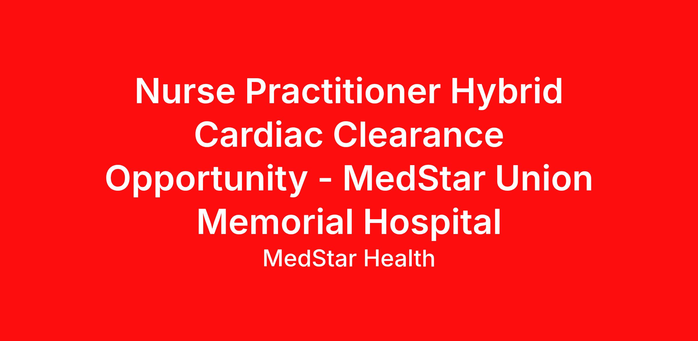 Nurse Practitioner Hybrid Cardiac Clearance Opportunity - MedStar Union Memorial Hospital