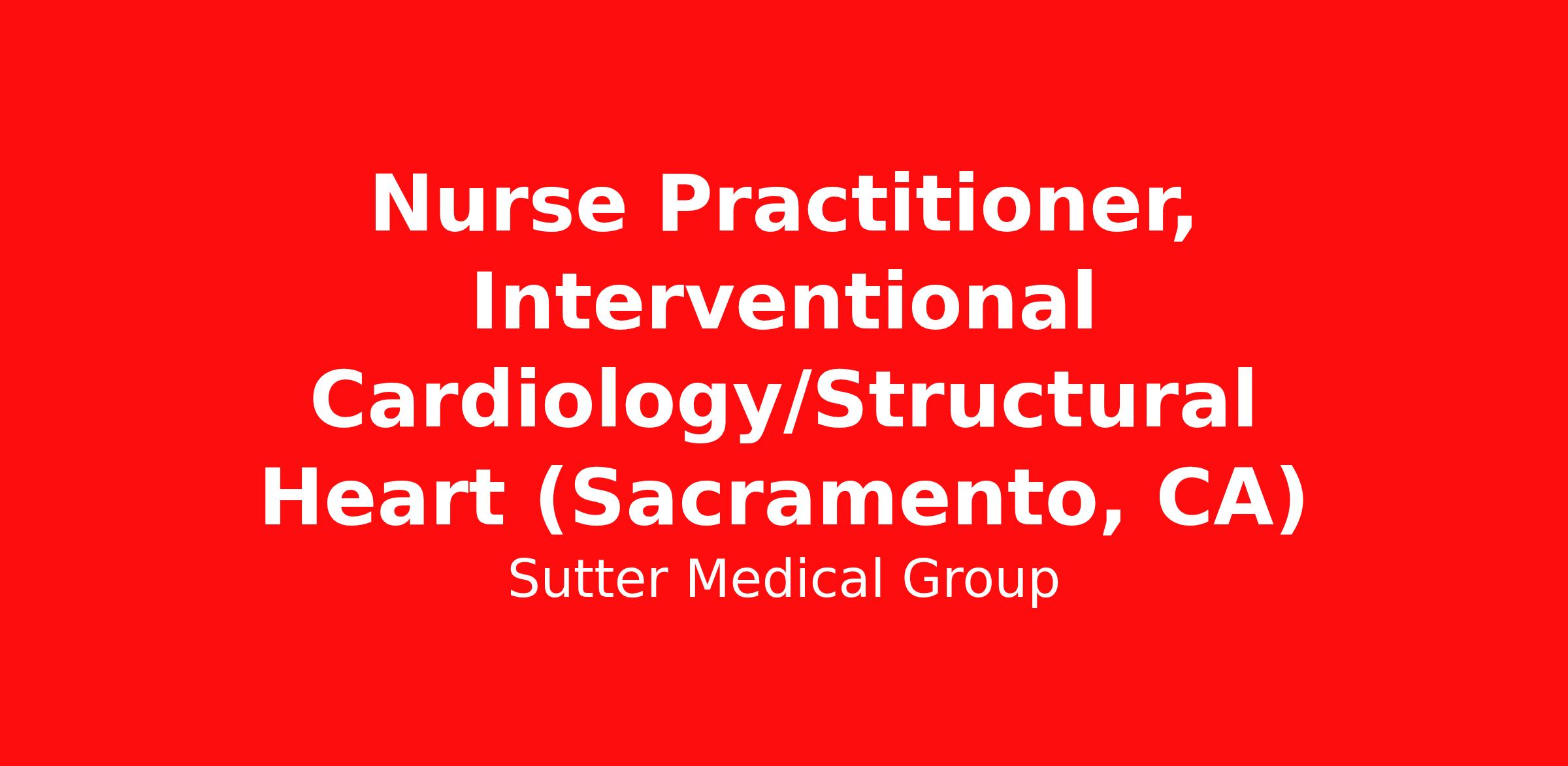 Nurse Practitioner, Interventional Cardiology/Structural Heart (Sacramento, CA)