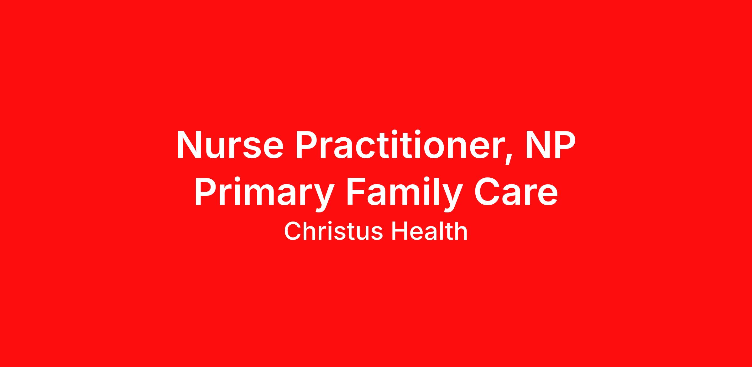 Description Summary: We are looking for a Nurse Practitioner to join our amazing clinician team at our CHRISTUS Sphon Family Health Center Westside in Corpus Christi. Enjoy a balanced professional and personal lifestyle that includes: - Paid Time Off 5 Paid CME Days - Annual stipend for CME - Malpractice Insurance coverage - Excellent work/life balance - Competitive compensation and a comprehensive benefits package - Epic EMR CHRISTUS Trinity Clinic (CTC) is a multi-specialty medical group with more than 850 Physicians and Advanced Practice Providers. Our clinicians represent more than 60 specialties in over 140 clinic locations across 4 states - Texas, Louisiana, Arkansas, and New Mexico. CHRISTUS Trinity Clinic is a physician-led and governed medical group and is a part of the CHRISTUS Health family. CHRISTUS Health is an international Catholic, faith-based, not-for-profit health system comprising almost 350 services and facilities, including more than 60 hospitals and long-term care facilities, 175 clinics and outpatient centers, and dozens of other health ministries and ventures. CHRISTUS Health serves the needs of underserved communities in seven (7) U.S. states including, Chile, Colombia, and six states in Mexico. Our Mission, to Extend the Healing Ministry of Jesus Christ. Requirements: Current Licensure through the Texas Board of Nursing OR Licensed Physician Assistant by the Texas State Medical Board or the ability to obtain prior to employment Valid DEA license or the ability to obtain one prior to employment BLS obtained by the American Heart Association Work Schedule: 5 Days - 8 Hours Work Type: Full Time Recruiter: Dee Dee Fowler deedee.fowler@christushealth.org Call/Text: (903) 237-9418