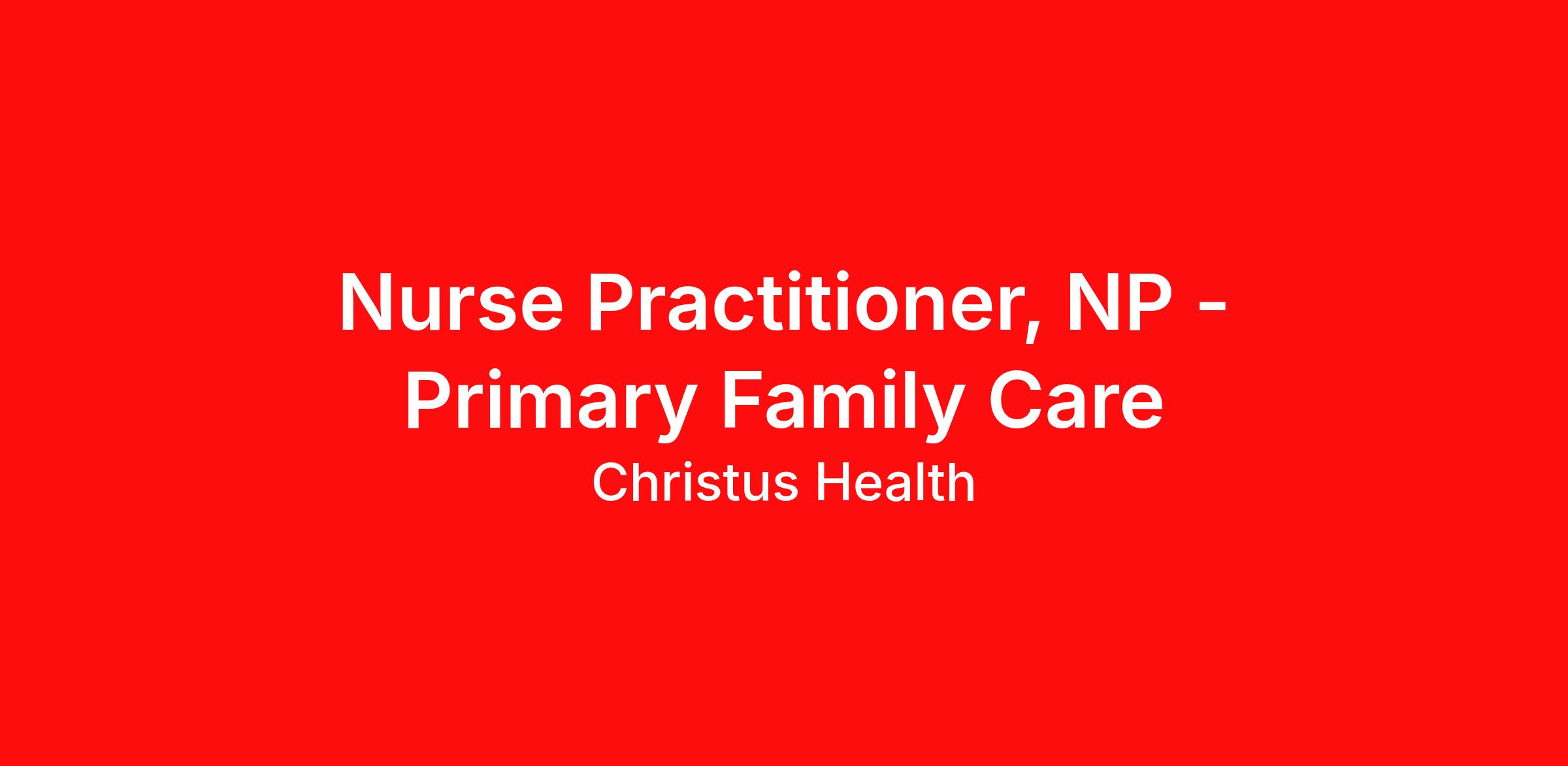 Description Summary: We are looking for a Nurse Practitioner to join our amazing clinician team at our CHRISTUS Sphon Family Health Center Westside in Corpus Christi. Enjoy a balanced professional and personal lifestyle that includes: Paid Time Off 5 Paid CME Days Annual stipend for CME Malpractice Insurance coverage Excellent work/life balance Competitive compensation and a comprehensive benefits package Epic EMR CHRISTUS Trinity Clinic (CTC) is a multi-specialty medical group with more than 850 Physicians and Nurse Practitioners . Our clinicians represent more than 60 specialties in over 140 clinic locations across 4 states - Texas, Louisiana, Arkansas, and New Mexico. CHRISTUS Trinity Clinic is a physician-led and governed medical group and is a part of the CHRISTUS Health family. CHRISTUS Health is an international Catholic, faith-based, not-for-profit health system comprising almost 350 services and facilities, including more than 60 hospitals and long-term care facilities, 175 clinics and outpatient centers, and dozens of other health ministries and ventures. CHRISTUS Health serves the needs of underserved communities in seven (7) U.S. states including, Chile, Colombia, and six states in Mexico. Our Mission, to Extend the Healing Ministry of Jesus Christ. Requirements: Current Licensure through the Texas Board of Nursing or the ability to obtain prior to employment Valid DEA license or the ability to obtain one prior to employment BLS obtained by the American Heart Association Work Schedule: 5 Days - 8 Hours Work Type: Full Time Recruiter: Dee Dee Fowler deedee.fowler@christushealth.org Call/Text: (903) 237-9418