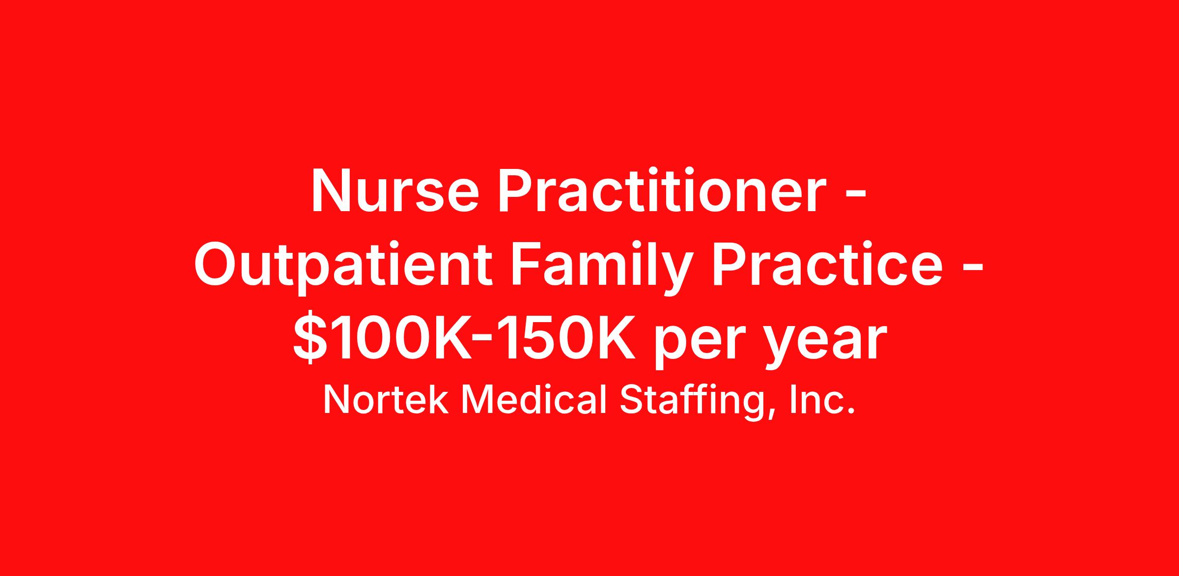 Nortek Medical Staffing, Inc. is seeking a Nurse Practitioner Outpatient Family Practice for a job in Roxboro, North Carolina. Job Description & Requirements Specialty: Family Practice Discipline: Nurse Practitioner Duration: Ongoing 40 hours per week Shift: 8 hours, days Employment Type: Staff Position Overview NorTek Medical Staffing is seeking an experienced Nurse Practitioner (NP) or Physician Assistant (PA) for a permanent, full-time urgent care position in Roxboro, NC. This is an outpatient role focused on delivering high-quality care in an urgent care setting. Key Responsibilities Provide comprehensive care in an urgent care outpatient setting. Conduct assessments, diagnostic tests, and treatments for a variety of urgent care conditions. Manage a caseload of approximately 30 patients per shift. Collaborate with other healthcare professionals to ensure optimal patient outcomes. Document all patient interactions and clinical details accurately using the Epic EMR system. Ensure compliance with clinical protocols and relevant regulatory requirements. Required Qualifications Licensure: Active, unrestricted North Carolina (NC) license. Certification: Board Certification in the specialty area (Nurse Practitioner or Physician Assistant). BLS Certification (required). DOT, PALS/ACLS certifications preferred but not mandatory. Experience: Minimum of 2 years of clinical experience in an urgent care or similar outpatient setting. Strong diagnostic and treatment skills in an urgent care environment. Other: Must be able to work independently with minimal supervision. Board Certification in the relevant specialty area is required. Practice Setting Facility Type: Outpatient urgent care Patient Population: General urgent care patients Pay Rate: $100,000 to $150,000 Work Hours & Schedule Work Hours: Scheduled clinical hours only, Monday through Friday (no weekends or on-call shifts) Nortek Medical Staffing, Inc. Job ID 10015. About Nortek Medical Staffing, Inc. Allied Healthcare Staffing Services NorTek Medical Staffing is a full-service recruitment firm specializing in providing critical staffing solutions for Allied Healthcare Professionals , alongside physicians and mid-level providers. The company excels at connecting high-quality, specialized clinicians with facilities requiring temporary (Locum Tenens), contract, or permanent staff. Placement Types: Locum Tenens (temporary), Contract , and Permanent placements. Key Allied Health Specialties Staffed: Certified Registered Nurse Anesthetists (CRNAs) Physician Assistants (PAs) Nurse Practitioners (NPs) Other Allied Healthcare Professionals (specific roles often include Imaging, Therapy, and specialized technicians). Client Settings: NorTek places Allied Health staff in diverse environments, including Hospitals, Medical Groups, Outpatient Clinics, Urgent Care Centers, and Government Facilities (VA and DoD). Why Choose NorTek for Allied Health? NorTek's approach is designed to meet the high demand for specialized non-physician providers: National Reach: Placing Allied Health professionals in facilities across the entire U.S. Rapid Deployment: Efficiently sourcing and deploying professionals to cover urgent short-term and long-term needs. Compliance and Credentialing: A dedicated team ensures all placed personnel are thoroughly screened, compliant, and credentialed according to the highest industry and facility standards. Focus on Fit: Providing personalized, consultative service to ensure a strong match between the clinician's skills and the facility's specific patient needs.