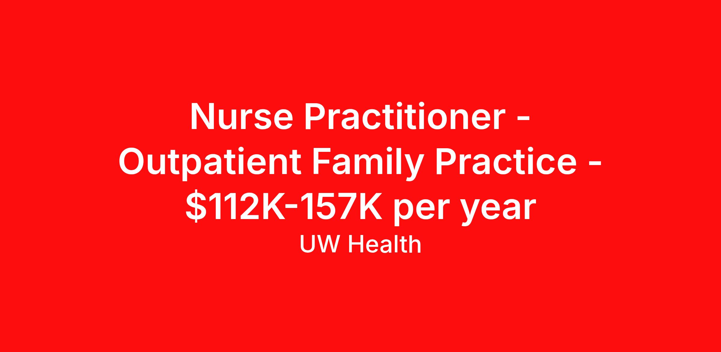 Nurse Practitioner - Outpatient Family Practice - $112K-157K per year