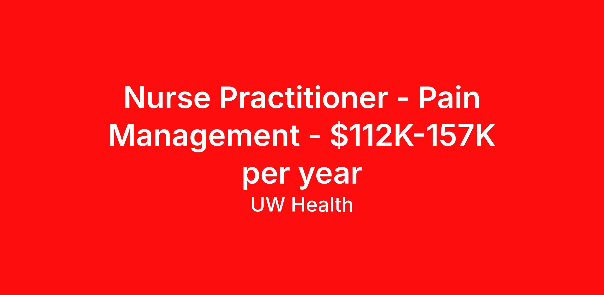 Nurse Practitioner - Pain Management - $112K-157K per year