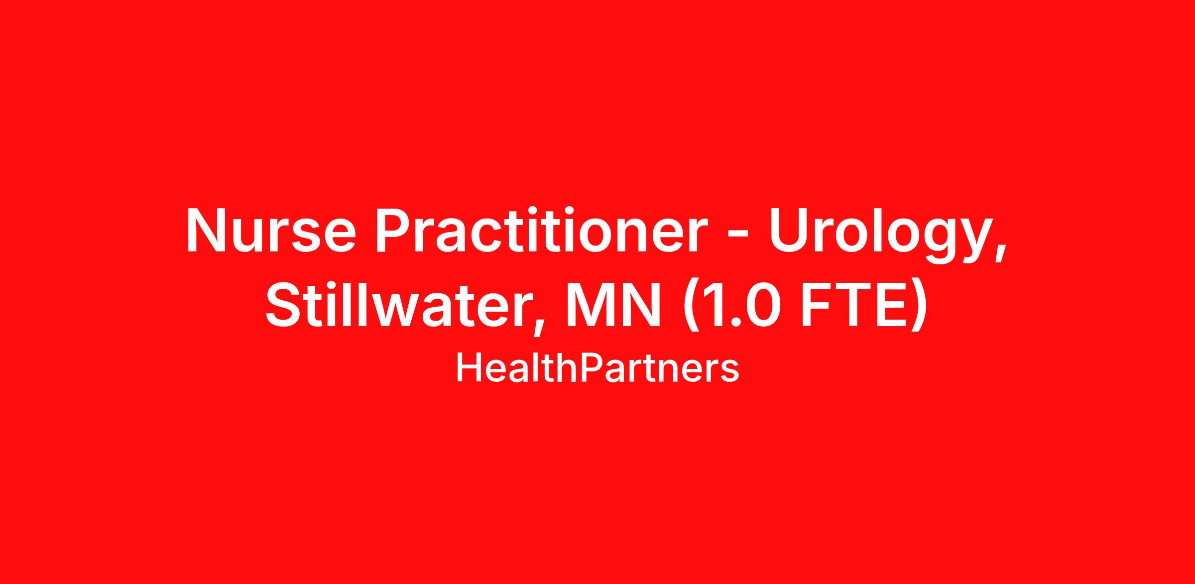 The Department of Urology at HealthPartners Clinic – Stillwater is seeking a FT NP to join their care team. The position is based in Stillwater and will involve clinic, hospital rounding/consults and OR work. In this collaborative clinic-based position you will order and interpret diagnostic studies, establish and carry out treatment plans, perform therapeutic procedures in an outpatient clinic, complete daily charting, and provide ongoing medical management of common urological conditions for men and women. Call expectation is 1-2 nights (4p-8a) per week M-TH, off premise, with physician back-up. Candidates must have graduated from an accredited NP/PA program. Experience in a clinic-based practice with 1 year surgery experience is highly preferred. You will be joining a team that is supportive and respectful of one another and deeply committed to the mission of HealthPartners. Here, you’ll become a partner for good, helping to improve the health and well-being of our patients, members and community. Our commitment to excellence, compassion, partnership and integrity is behind everything we do. It’s the type of work that makes a difference, the kind of work you can be proud of. We hope you’ll join us. BENEFITS: HealthPartners benefit offerings (for 0.50 FTE or greater) include medical insurance, dental insurance, 401k with company contribution and match, paid time off, life insurance, AD&D insurance, disability insurance, malpractice insurance for work done on behalf of HealthPartners as well as a CEU reimbursement account. Our clinician well-being program provides a wealth of information, tools, and resources tailored to meet the unique needs of our health care professionals, including physicians, advanced practice clinicians (APCs) and dentists. HealthPartners is a qualified non-profit employer under the federal Public Service Loan Forgiveness program. In addition to a competitive wage, Advance Practice Clinicians have the opportunity to earn additional compensation based upon their wRVU production. NEIGHBORHOOD: It’s no surprise that Stillwater was voted one of America’s Most Picturesque Towns by USA Today. Located on the Minnesota/Wisconsin border along the St. Croix River, the historic downtown district offers year-round fun. A thriving foodie scene highlighted by standouts Lolo American Kitchen and Craft Bar and Brick & Bourbon, Stillwater is also home to many great shops. From vintage upcycled home décor to boutiques and breweries, Stillwater has it all. And the beauty of the St. Croix River Valley never fails to inspire. TO APPLY: For more information about the position or to apply, please contact Shauna Baer, Senior Clinician Recruiter at Shauna.J.Baer@HealthPartners.com . For immediate consideration, please apply online. PAY RANGE: $53.41- $80.11 per hour PAY RANGE STATEMENT: Compensation is based on the level and requirements of the role. Pay within our ranges may also be determined by education, experience, knowledge, skills, location, and abilities as well as internal equity. ABOUT US: At HealthPartners we believe in the power of good – good deeds and good people working together. As part of our team, you’ll find an inclusive environment that encourages new ways of thinking, celebrates differences, and recognizes hard work. We’re a nonprofit, integrated health care organization, providing health insurance in six states and high-quality care at more than 90 locations, including hospitals and clinics in Minnesota and Wisconsin. We bring together research and education through HealthPartners Institute, training medical professionals across the region and conducting innovative research that improve lives around the world. At HealthPartners, everyone is welcome, included and valued. We’re working together to increase diversity and inclusion in our workplace, advance health equity in care and coverage, and partner with the community as advocates for change. Benefits Designed to Support Your Total Health At HealthPartners, we believe in nurturing your diverse talents, recognizing your hard work, and supporting your work-life balance. Your well-being is vital, as it enables you to help deliver exceptional care. That’s why we offer a comprehensive range of benefits designed to support every aspect of your life – from health and time off to retirement planning and continuous learning opportunities. Our goal is to empower you to thrive physically, mentally, emotionally, and financially. Join us and become a partner for good, helping to improve the health and well-being of our patients, members and the communities we serve. We are an Equal Opportunity Employer and do not discriminate against any employee or applicant because of race, color, sex, age, national origin, religion, sexual orientation, gender identity, status as a veteran or basis of disability, or any other federal, state or local protected class.