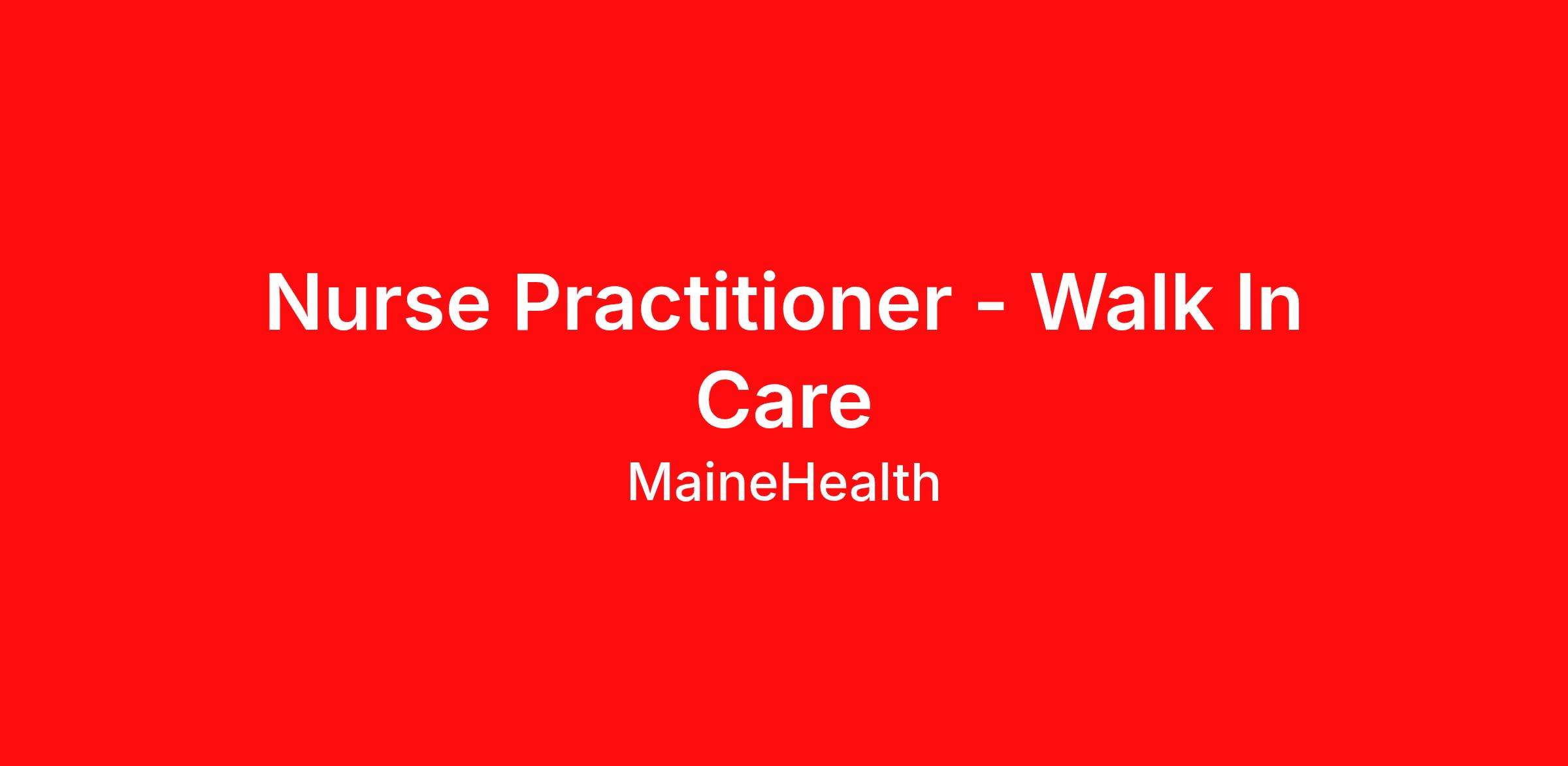 MaineHealth Waldo Hospital in beautiful Belfast, Maine is currently seeking a Nurse Practitioner to join its Walk in Care team. This position is a 32-hour a week position caring for patients of all ages with minor medical issues and injuries on a walk-in basis. We seek an NP who is looking to work in a fast-paced environment caring for various medical conditions as part of a patient centered team. Providers work collaboratively with our other Walk in care team members and Primary Care Providers. Our facility is currently embedded in our Primary Care office located on the Waldo campus. The Position Offers: Competitive compensation package including a sign on bonus, relocation assistance and CME expense reimbursement. Benefits include Paid Time Off, CME time, retirement options with employer contributions, medical, dental, vision, life/disability coverage, and more. Qualifications & Experience: Education:?Bachelor's degree from an accredited four-year college or university. Graduate of an accredited certified Nurse Practitioner’s program License/Certification:?Maine NP License and DEA. ACLS and PALS preferred. Experience in emergency medicine, urgent care/walk-in care or primary care is preferred. 2 years’ experience as an NP is required. The Community: Belfast is located on Maine’s picturesque coast and has easy access to Maine’s lakes and rivers, award-winning golf courses and abundant hiking trails. Enjoy a rich cultural opportunity and great schools in a safe community environment. To learn more about our system please visit www.mainehealth.org and our benefits page. Interested candidates should complete our brief application to begin the process. Additional Information : MaineHealth is a not-for-profit integrated health system whose vision is, “Working together so our communities are the healthiest in America.” MaineHealth consists of nine local health systems, a comprehensive behavioral health care network, diagnostic services, home health agencies, and 1,700 employed clinicians working together through the MaineHealth Medical Group. With approximately 22,000 care team members, MaineHealth provides preventive care, diagnosis, and treatment to 1.1 million residents in Maine and New Hampshire.
