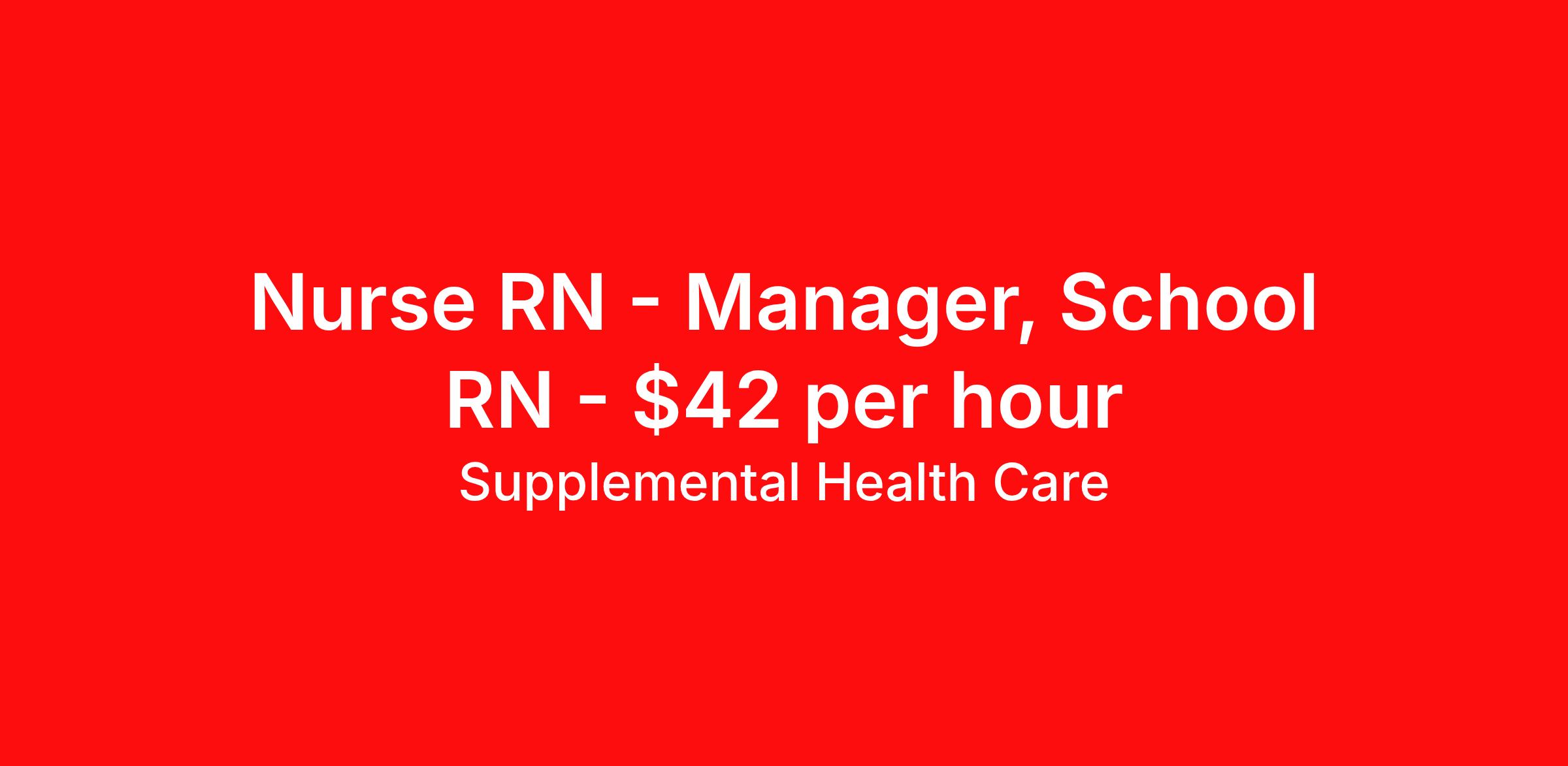 Supplemental Health Care is seeking a local contract nurse RN Manager, School RN for a local contract nursing job in East Greenbush, New York. Job Description & Requirements Specialty: School RN Discipline: RN Start Date: ASAP Duration: 13 weeks 20 hours per week Shift: 4 hours, days Employment Type: Local Contract Job Description: Supplemental Health Care has been named Best in Staffing based on real feedback from our working school professionals. For our Registered Nurses, that means unique support and experienced recruiters from our Schools Center of Excellence to assist you in every step of your career. We’re partnering with a school district in need of a Registered Nurse in East Greenbush, New York. Qualifications: Registered Nurse New York license/certification Previous experience working in a school setting or pediatric experience preferred American Heart Association BLS Registered Nurse Contract Details: $39.05 - $42.05 per hour Schedule follows the school district calendar Join SHC and experience award-winning support for school professionals. With top-rated service, great benefits, and career growth opportunities, we make your success our priority. If you'd like more detail on this Registered Nurse opportunity or are ready to get started, please apply online now. What We Offer: Full medical, dental, vision, life, and even pet insurance! Round the clock support. No matter where you are or what time it is, Supplemental Health Care is standing by. SHC's Share the Care referral program is the most dynamic, profitable referral program in the industry. 401(k) Retirement Savings Program with a wide range of investment options. Discounted and free online access to CEU courses through Supplemental University. Supplemental Health Care is an Equal Opportunity Employer. All candidates, including veterans and those with disabilities, are encouraged to apply. SHC will consider for employment qualified applicants with criminal histories in a manner consistent with the requirements of applicable local, state, or federal law. To learn more, visit www.shccares.com/eeo Supplemental Health Care Job ID 1469227. Pay package is based on 4 hour shifts and 20 hours per week (subject to confirmation) with tax-free stipend amount to be determined. Posted job title: Registered Nurse – School Setting – East Greenbush, New York About Supplemental Health Care At Supplemental Health Care, a simple belief in the power of caring guides a unique commitment to world-class service in healthcare staffing. For 40 years, we’ve supported talented professionals pursuing their life calling in hospitals, schools, home health, corrections, behavioral health, and other settings. At SHC, we inspire vital connections and enrich lives and inspire better outcomes. As recipients of the Best in Staffing Awards for both Client and Talent, Supplemental Health Care is proud to be among only 2% of staffing companies singled out for the distinction based on the real feedback of our employees and the clients we serve. SHC has also earned The Joint Commission’s Gold Seal of Approval and is named among the Largest Health Care Staffing companies in the United States by Staffing Industry Analysts. We are also thrilled to recognize our very own SLP, Dr. Kelly Byrd as the American Staffing Association 2024 National Staffing Employee of the Year and Health Care Sector All-Star. We’re honored to connect Dr. Byrd to employment, share her incredible story, and support her family literacy nonprofit. For everyone that we serve, SHC is the place where caring hearts thrive. Benefits Referral bonus Benefits start day 1 401k retirement plan Continuing Education Discount program Health savings account