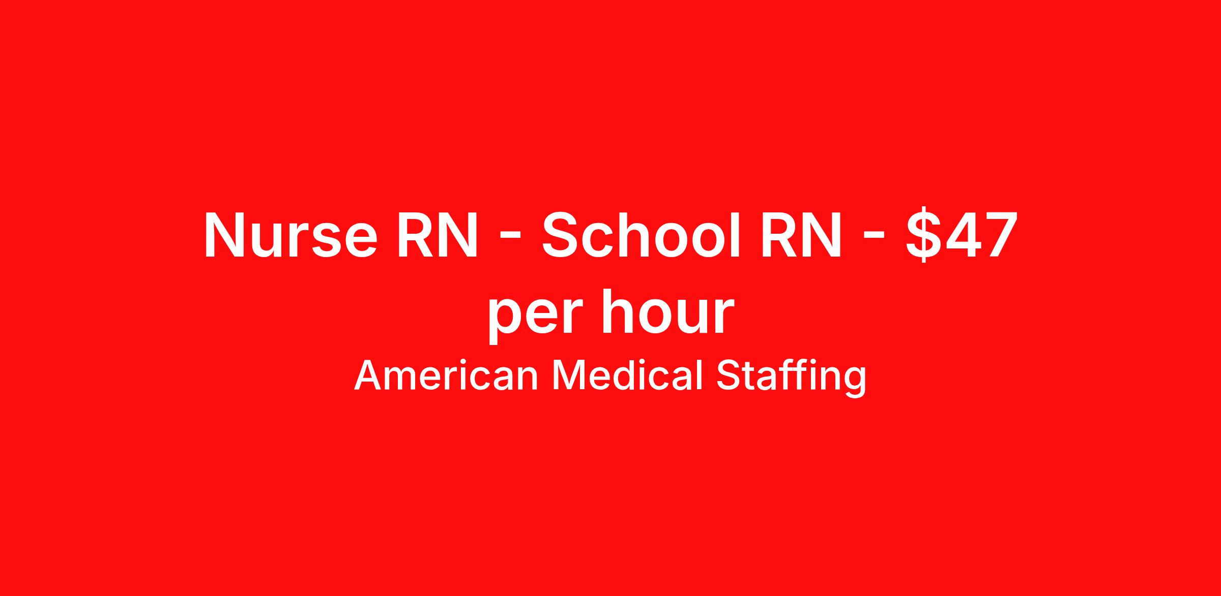 American Medical Staffing is seeking a local contract nurse RN School RN for a local contract nursing job in Easton, Maryland. Job Description & Requirements Specialty: School RN Discipline: RN Start Date: 03/30/2026 Duration: 14 weeks 37.5 hours per week Shift: 8 hours, days Employment Type: Local Contract We’re living in the new normal. Lives and careers look different today. So why shouldn’t you have a role that delivers excitement, fewer restrictions, and brings you closer to loved ones? At American Medical Staffing (AMS), we believe in supporting the pioneers who embody the sense of adventure each new placement brings and we’re looking for a Registered Nurse for a school-based contract assignment. Job Title: Registered Nurse (RN) – School Nurse Location: Easton, MD Setting: School-Based (Pre-K through 12, depending on assignment) Pay Range: $27.50-$47.50 hourly (Pay based on experience) * Hours: Full Time or Part Time Available Contract Length: 2025-2026 School Year Requirements Valid Registered Nurse (RN) license Be willing to obtain state licensure 2 years as an RN with pediatric experience preferred but not required. Why Choose American Medical Staffing? Day-One Benefits: Medical, dental, and vision plans with no waiting period Wellness PTO: Build 1 or 6 weeks of paid time off into your contract Hotel Discounts: Save up to 60% through our partnership with Hotel Engine Loyalty Program: Earn financial incentives automatically based on hours worked Referral Program: $500 for you and $500 for each referral after 450 hours—no limits Working Advantage: Exclusive discounts on retail, entertainment, and travel Scrub Discount: 20% off scrubs through our AMS store Retirement Plans: 401(k) options available after 90 days Compliance & Credentialing Support: We handle the logistics Mentoring & Support: Guidance from professionals who understand the school setting Responsibilities Provide direct care to students for illness, injury, and chronic health conditions within the school setting. Maintain accurate health records, including immunizations, screenings, and emergency plans. Collaborate with school staff and families to support student health and well-being. Apply now to take the next step in your journey. American Medical Staffing is an Equal Employment Opportunity Employer and does not discriminate on the basis of race, color, religion, sex, national origin, sexual orientation, gender identity, disability, age, or any other non-merit factor. American Medical Staffing Job ID 108251. Posted job title: RN:Schools,08:00:00-15:30:00 About American Medical Staffing American Medical Staffing is a staffing agency headquartered in Baltimore, MD. Our goal is to CREATE an extraordinary experience for our health care professionals. Our roots are nurse owned and operated so we know what clinicians want - lots of options, a smooth and informed placement process, competitive and accurate pay, great customer service and responsiveness to requests, and advocacy when there is an issue. When AMS was founded in 2001, we started our company with a mission to be a better agency than our competitors. We have always put a heavy emphasis into what is best for our employees, not necessarily just our clients or our company. You are not an expense as you may be to a hospital; you are an asset. We take employee advocacy seriously; you are not just a number to us. The end result is that you don`t work for us; we work for you. Since starting in Baltimore, MD, we continue to grow throughout the country. Check out our industry leading reviews on Google and Indeed to see how much our clinicians enjoy working with us! · Benefits: AMS offers an array of benefits for any employee working 30 hours or more! Those eligible employees who choose to participate will pay the premiums with deductions from their pre-tax earnings. We offer a complete benefits package including Health Insurance, 401K with up to 2% match, Life, Vision, and Dental. From health and wellness support, financial or legal needs, or help with life's everyday challenges, our Employee Assistance Program provides you with resources, services and discounts to help you manage your unique concerns and save time, energy and money. We also offer additional Employee Perks that you can enjoy as an AMS employee: Scrubin – Uniform Discounts Working Advantage – unlimited access to thousands of exclusive discounts and special offers nationwide for theme parks, shows, tours, attractions, sports, concerts, hotels, rental cars, retail gift cards, movie tickets and much more Hotel Engine - Save up to 60% when booking hotel rooms, with access to more than 700,000 deeply discounted hotels worldwide. Discounted Pet Insurance Wellness Program, including fitness, nutrition and financial wellness Betterhelp - 1 month of free therapy, followed by a discounted rate for our Healthcare Professionals and their family members. Win Win Referral Bonus - $500 for you, and $500 for them! Benefits 401k retirement plan Life insurance Medical benefits Dental benefits Vision benefits