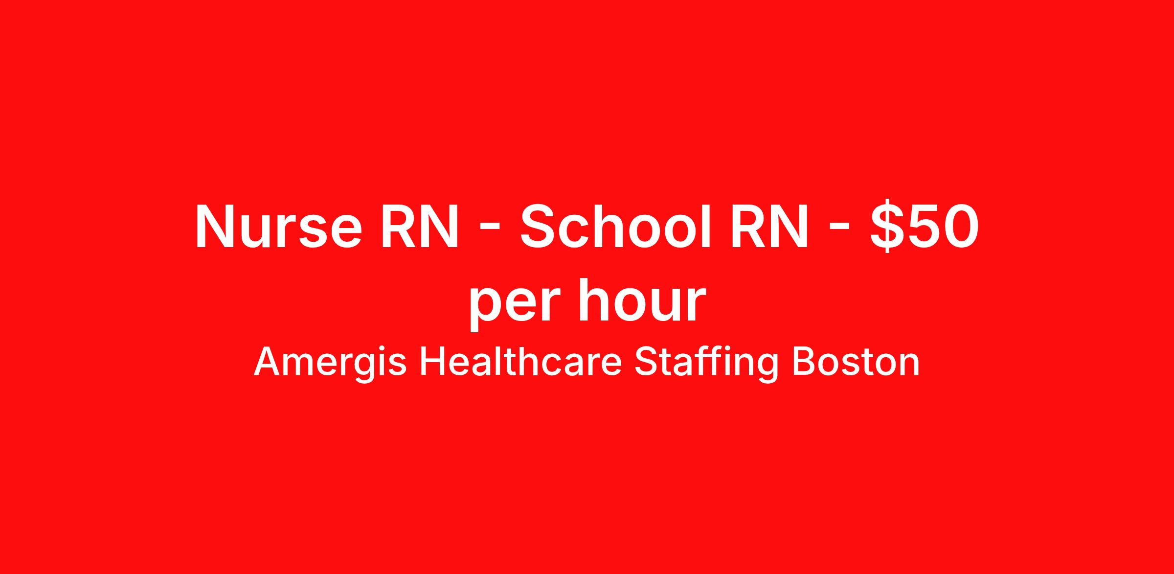 Amergis Healthcare Staffing Boston is seeking a per diem / prn nurse RN School RN for a per diem / prn nursing job in Boston, Massachusetts. Job Description & Requirements Specialty: School RN Discipline: RN Duration: Ongoing Up to 8.00 hours per week Shift: 8 hours, days Employment Type: Per Diem Amergis Healthcare Staffing Boston Job ID 1075858. About Amergis Healthcare Staffing Boston Amergis, formerly known as Maxim Healthcare Staffing, has served our clients and communities by connecting people to the work that matters since 1988. We provide meaningful opportunities to our extensive network of healthcare and school-based professionals, ready to work in any hospital, government facility, or school. Through partnership and innovation, Amergis creates unmatched staffing experiences to deliver the best workforce solutions. Benefits Referral bonus