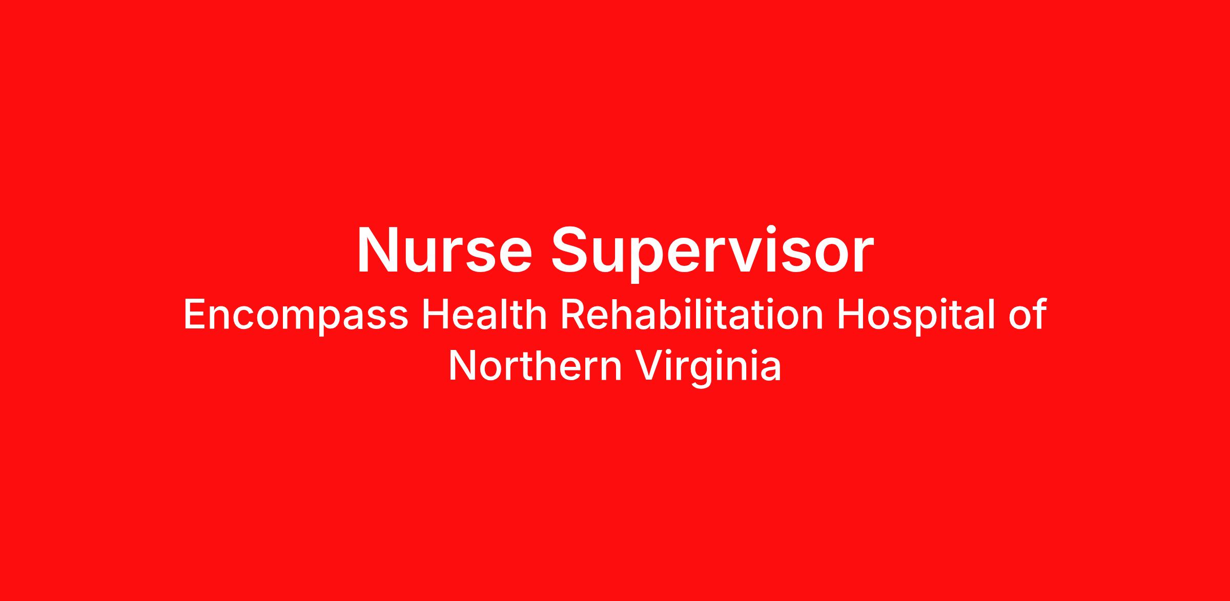 Nurse Supervisor Career Opportunity Leading with Heart: Your Journey Starts Here Seeking a career that's both personally enriching and professionally rewarding, close to home? Encompass Health invites you into a welcoming space that feels like family, where your worth is embraced, fostering connections akin to lifelong friendships. As a Nurse Supervisor, envision making a profound impact within your community by providing essential care and guidance throughout patients' rehabilitation journeys. Your role is critical, offering leadership ensuring seamless implementation of procedures while delivering top-tier, compassionate, and tailored care. Embrace a team-driven, supportive environment that embraces joy in their work, providing access to cutting-edge technology and comprehensive benefits from day one. Join us and discover a career where your leadership shapes impactful care and personal fulfillment. A Glimpse into Our World We're confident you'll feel the difference the moment you join our team. Being at Encompass Health means being associated with a growing national inpatient rehabilitation leader. We take pride in our career growth opportunities and the collaborative spirit of our team members, all united for the greater good of our patients. Our achievements, including being named one of the "World's Most Admired Companies" and receiving the Fortune 100 Best Companies to Work For® Award, make us immensely proud. Benefits That Begin With You Our benefits are designed to support your well-being and start on day one : Affordable medical, dental, and vision plans for both full-time and part-time employees and their families. Generous paid time off that accrues over time. Tuition reimbursement and continuous education opportunities for your professional growth. Company-matching 401(k) and employee stock purchase plans, securing your financial future. Flexible spending and health savings accounts tailored to your unique needs. A vibrant community of individuals who are passionate about what they do. Be the Nurse Supervisor You've Always Aspired to Be Your impactful journey involves: Assisting in the development and implementation of personalized patient care programs, policies, and procedures. Serving as the crucial liaison between administration, nursing management, and staff. Supervising nursing care, treatment, and services provided during assigned shifts or on a specific unit. Monitoring and managing staff, including on-the-spot feedback, annual evaluations, and administering performance counseling and discipline Assuming patient care as needed and building meaningful relationships with patients by dedicating time to understand their physical, mental, and emotional needs for a successful recovery. Celebrating patient victories along the way. Qualifications Current RN licensure as required by state regulations. BLS certification with ACLS certification to be obtained within one year of starting position. CRRN certification to be obtained within a year of meeting the eligibility requirements. Bachelor's Degree in Nursing or related field preferred. Two years of recent experience in an inpatient hospital setting (within the last five years). Previous leadership role, such as charge nurse or lead capacity, where you were responsible for interim reporting, issue resolution, setting direction, and having accountability for patient and staff results. The Encompass Health Way We proudly set the standard in care by leading with empathy, doing what's right, focusing on the positive, and standing stronger together. Encompass Health is a trusted leader in post-acute care with over 150 nationwide locations and a team of 36,000 exceptional individuals and growing! At Encompass Health, we celebrate and welcome diversity in our inclusive culture. We provide equal employment opportunities regardless of race, ethnicity, gender, sexual orientation, gender identity or expression, religion, national origin, color, creed, age, mental or physical disability, or any other protected classification.