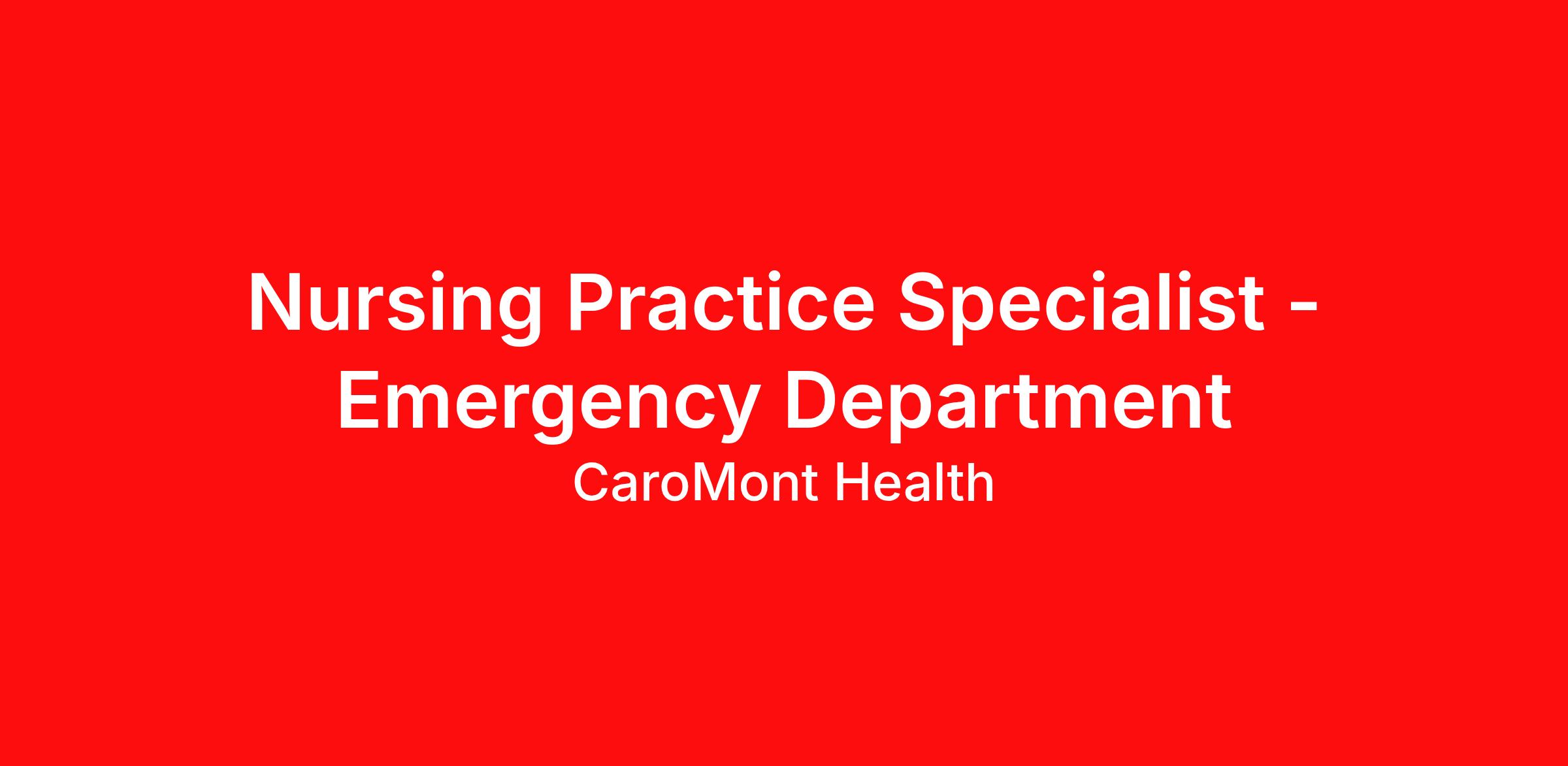CaroMont Health's mission: To provide compassionate, exceptional, and highly reliable care. CaroMont Heath's vision: To be the community's most trusted healthcare partner. The values of our organization are what we believe and how we behave. They are the way we support each other and our patients, they are the basis for our decisions, and they are the way we hold ourselves and each other accountable. Nursing Practice Specialist - Emergency Department Job Summary : Nursing Practice Specialists (MSN) are essential in coordinating and measuring nursing efforts to improve quality care. Nursing Practice Specialists (MSN) are crucial to the professional development of nurses and positive outcomes for patients and families. Nursing Practice Specialists (MSN) promote and practice collegial and collaborative relationships with healthcare professionals, patients, families, and other individuals whose decisions influence the health of individual patients, families, and communities. Nursing Practice Specialists (MSN) assume leadership for the application of research findings for the improvement of healthcare outcomes and actively participate in organizational policy review as it relates to direct patient care and nursing practice. Nursing Practice Specialists (MSN) integrate education, consultation, management, leadership, and research into their role. The Nursing Practice Specialists (MSN) can independently function as an expert clinician and patient advocate, lead the advancement of nursing practice, and identify opportunities for and assist nursing and/or the appropriate Service Line with organizational and system change. Qualifications: Current Registered Nurse (RN) license to practice in NC (NC licensure or multi-state (compact) license). MSN or higher degree in Nursing. Nationally certified Clinical Nurse Specialist (CNS) preferred but not required. If not a CNS, current National Certification in specialty area of responsibility. A minimum of four years clinical experience in a related area and demonstrated expertise in acute care nursing care of specific patient population(s) is required. A thorough knowledge of general and advanced nursing principles, methods and techniques, as well as skill in facilitating the professional development of nursing. Nursing Practice Specialists (MSN) will also facilitate unit-based education in conjunction with the Unit Based Educator(s), be involved in Service Line quality improvement, and facilitate implementation of evidence-based protocols and policies. EOE AA M/F/Vet/Disability IND123