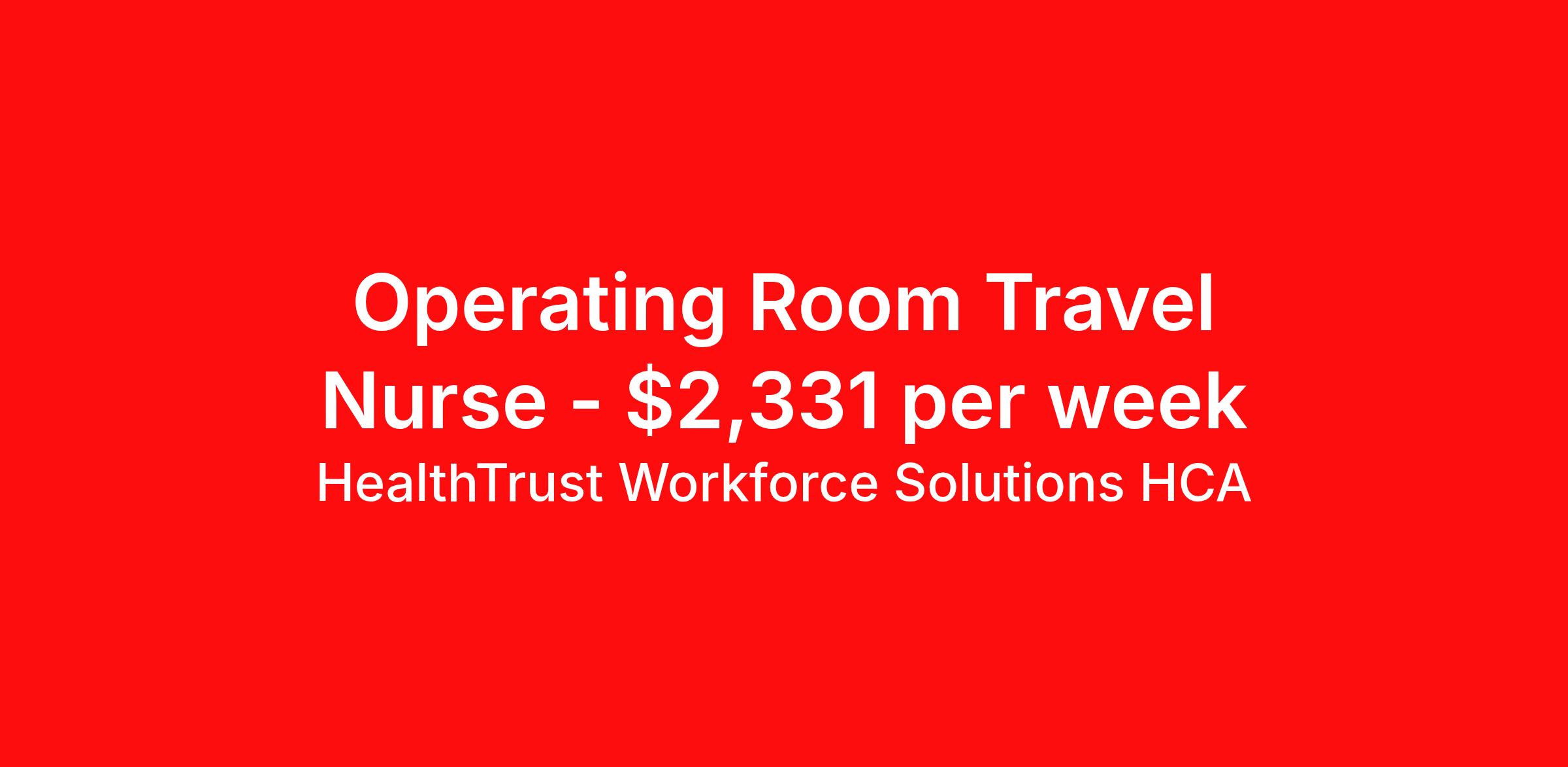HealthTrust Workforce Solutions HCA is seeking a travel nurse RN OR - Operating Room for a travel nursing job in Hopewell, Virginia. Job Description & Requirements Specialty: OR - Operating Room Discipline: RN Duration: 13 weeks 36 hours per week Shift: 10 hours, days Employment Type: Travel Entrust Your Career to HealthTrust! At HealthTrust, we believe that healthcare is not defined by the four walls in which it is practiced; it’s defined by its people. We pride ourselves on crafting opportunities that expand skill sets, broaden career horizons, provide economic stability, and cultivate personal growth. HealthTrust Offers: Competitive Pay Packages Guaranteed hours Weekly direct deposit options 401k with Company Match Earn up to $750 for referrals Free Private Furnished Housing or Tax-Free Subsidy To get started, you will need: RN's a minimum of 1 year in specialty Allied 6 months of experience An adventurous spirit and fierce dedication Degree in corresponding specialty as required Appropriate certifications and licensure as needed for the specific position HealthTrust Benefits: Opportunities for a lifetime: When you become a part of the HCA family, you will have exclusive access to more opportunities than any other healthcare system in the nation. At HWS, we help open the door to a lifetime of lasting career opportunities. A culture of care: Our clinicians have made HWS an industry leader for over 25 years. We are passionate about our mission that, above all else, we are committed to the care and improvement of human life. Career Development: As a wholly owned subsidiary of HCA Healthcare, HWS is a preferred partner to thousands of top-performing hospitals. We provide our healthcare professionals with first-priority access to more than 200,000 jobs nationwide. We are uniquely positioned to offer you exclusive and direct access to HCA Healthcare’s vast network of facilities. Let us open the door to nationwide opportunities that fit your lifestyle! We are an equal opportunity employer and value diversity at our company. We do not discriminate on the basis of race, religion, color, national origin, gender, sexual orientation, age, marital status, veteran status, or disability status. Job Requirements Certifications ACLS (Required) BLS (Required) HealthTrust Workforce Solutions HCA Job ID 988541. Posted job title: Travel Nurse - Operating Room About HealthTrust Workforce Solutions HCA At HealthTrust Workforce Solutions, healthcare is not just about the four walls of a facility but about the people who provide and receive care. Our focus is on empowering healthcare professionals to deliver exceptional patient experiences by providing them with the necessary skills, tools, and support. We partner with healthcare facilities nationwide to ensure that the right professionals are in the right roles. We prioritize our clinicians by giving them a voice and access to opportunities to fulfill their mission of improving lives by providing quality patient care. We are committed to our core values of Trust, Innovation, Adaptability, Courage, and Accountability. We are dedicated to positively impacting the healthcare industry by providing first-priority access to more than 200,000 jobs nationwide to our healthcare professionals. Join us and be part of the HealthTrust family, where you can make a difference every day. We embrace our changing environment, and we maintain a culture that has a rich tradition of transforming itself to meet the challenges of the future. MISSION STATEMENT While putting great people in the right roles is essential, our mission is far greater. We want our clinicians to be part of the HealthTrust family, where healthcare professionals have a voice and are empowered with the right tools and opportunities to fulfill their personal mission of improving lives. Plus, as a preferred partner to thousands of top-performing hospitals, we provide our healthcare professionals with first-priority access to more than 200,000 jobs nationwide. Benefits Dental benefits Vision benefits Referral bonus Continuing Education Life insurance