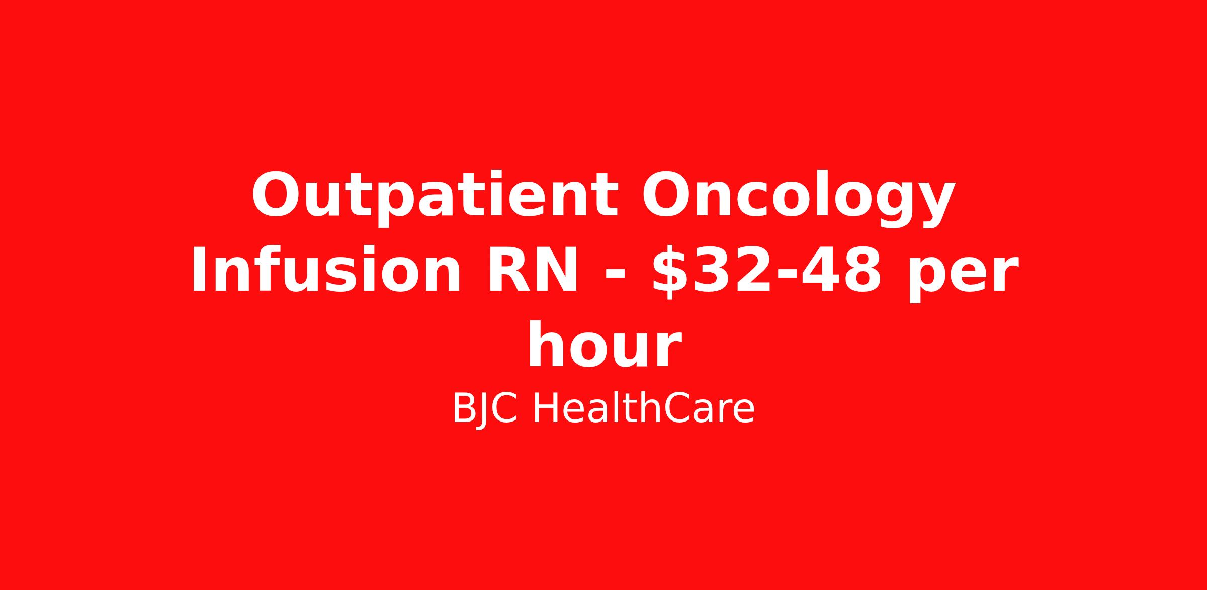 BJC HealthCare is seeking a Registered Nurse (RN) Outpatient Infusion for a nursing job in Saint Louis, Missouri. Job Description & Requirements Specialty: Infusion Discipline: RN Duration: Ongoing Employment Type: Staff At Vivian Health, candidates with updated profiles have the best success. Make sure yours is complete so recruiters can match you to the perfect job! Additional Information About the Role The BJC RN Career Ladder differentiates BJC as the place for nurses to work in the greater St. Louis area! This is a tool to empower nurses to work at the top of their license and own their career progression. The BJC RN Career Ladder promotes professional development, leadership, collaboration, education and service excellence and gives staff the opportunity to continue doing what they do best - caring for patients - while having the opportunity to advance to the next step in their career. Moves to higher ladder levels will result in a percentage increase of current pay that aligns with the new job description. Siteman Cancer Center West County is a satellite location that features an outpatient treatment area for patients to come in for scheduled appointments to receive chemotherapy, blood products, IV hydration, central line and port care, phlebotomy, etc. The scheduled infusion space is staffed with staff nurses and patient care technicians. Position Highlights Barnes Jewish West County Siteman Cancer Center Part time position Monday-Friday (3) 8hour rotating shifts, 7:00am, 7:30am, 8:00am, 8:30am and 9:00am No weekends - No holiday - No Call Required to float to other Siteman Sites in Missouri on a rotating basis as the need arises Benefit eligible on first day of month after start 2 years plus RN experience preferred Oncology experience preferred Cancer | Barnes-Jewish West County Hospital | St. Louis, MO We are seeking a compassionate and skilled Infusion Therapy Oncology Nurse to join our dedicated oncology team. The ideal candidate will have experience in administering infusions therapies and have a strong commitment to providing high quality patient centered care in a supportive environment and excellent communication, critical thinking and organizational skills. Strong IV insertion and port access skills needed. Overview Preferred Qualifications Role Purpose Provides direct patient care activities including assessment, diagnosis, planning implementation, and evaluation within the guidelines of the standards of nursing care. Responsibilities Promotes patient and family centered care in a healing environment. Educates patients and their families on how to manage their illness or injury, including post treatment home care needs and medication administration. Participates in activities that promote patient safety, quality and regulatory compliance. Participates in professional development. Develops, implements, and documents individual plans of care with defined goals in collaboration with other members of the interprofessional team and patient, family or caregiver in accordance with the established guidelines and standards of nursing care. Proactively plans and ensures communication of the plan of care across the continuum of care. Uses critical nursing skills to assess and evaluate physical, psychosocial, and emotional needs according to standards of care. Assess patient preferences and barriers to involvement in care, including their values, emotional, spiritual, cultural, and population-specific needs. BJC has determined this is a safety-sensitive position. The ability to work in a constant state of alertness and in a safe manner is an essential function of this job. Minimum Requirements Education Nursing Diploma/Associate's - Nursing Experience No Experience Supervisor Experience No Experience Licenses & Certifications RN Preferred Requirements Education Bachelor's Degree - Nursing Experience Benefits and Legal Statement BJC Total Rewards At BJC we’re committed to providing you and your family with benefits and resources to help you manage your physical, emotional, social and financial well-being. Comprehensive medical, dental, vison, life insurance, and legal services available first day of the month after hire date Disability insurance* paid for by BJC Annual 4% BJC Automatic Retirement Contribution 401(k) plan with BJC match Tuition Assistance available on first day BJC Institute for Learning and Development Health Care and Dependent Care Flexible Spending Accounts Paid Time Off benefit combines vacation, sick days, holidays and personal time Adoption assistance To learn more, go to our Benefits Summary. *Not all benefits apply to all jobs The above information on this description has been designed to indicate the general nature and level of work performed by employees in this position. It is not designed to contain or be interpreted as an exhaustive list of all responsibilities, duties and qualifications required of employees assigned to this job. Equal Opportunity Employer BJC HealthCare Job ID 103728. Posted job title: Infusionology Outpatient Registered Nurse - Siteman Cancer Center - Part Time About BJC HealthCare BJC HealthCare is one of the largest nonprofit health care organizations in the United States, delivering services to residents primarily in the greater St. Louis, southern Illinois and southeast Missouri regions. With net revenues of $6.3 billion and more than 30,000 employees, BJC serves patients and their families in urban, suburban and rural communities through its 14 hospitals and multiple community health locations. Services include inpatient and outpatient care, primary care, community health and wellness, workplace health, home health, community mental health, rehabilitation, long-term care and hospice. BJC is the largest provider of charity care, unreimbursed care and community benefits in the state of Missouri. BJC and its hospitals and health service organizations provide $785.9 million annually in community benefit. That includes $410.6 millio