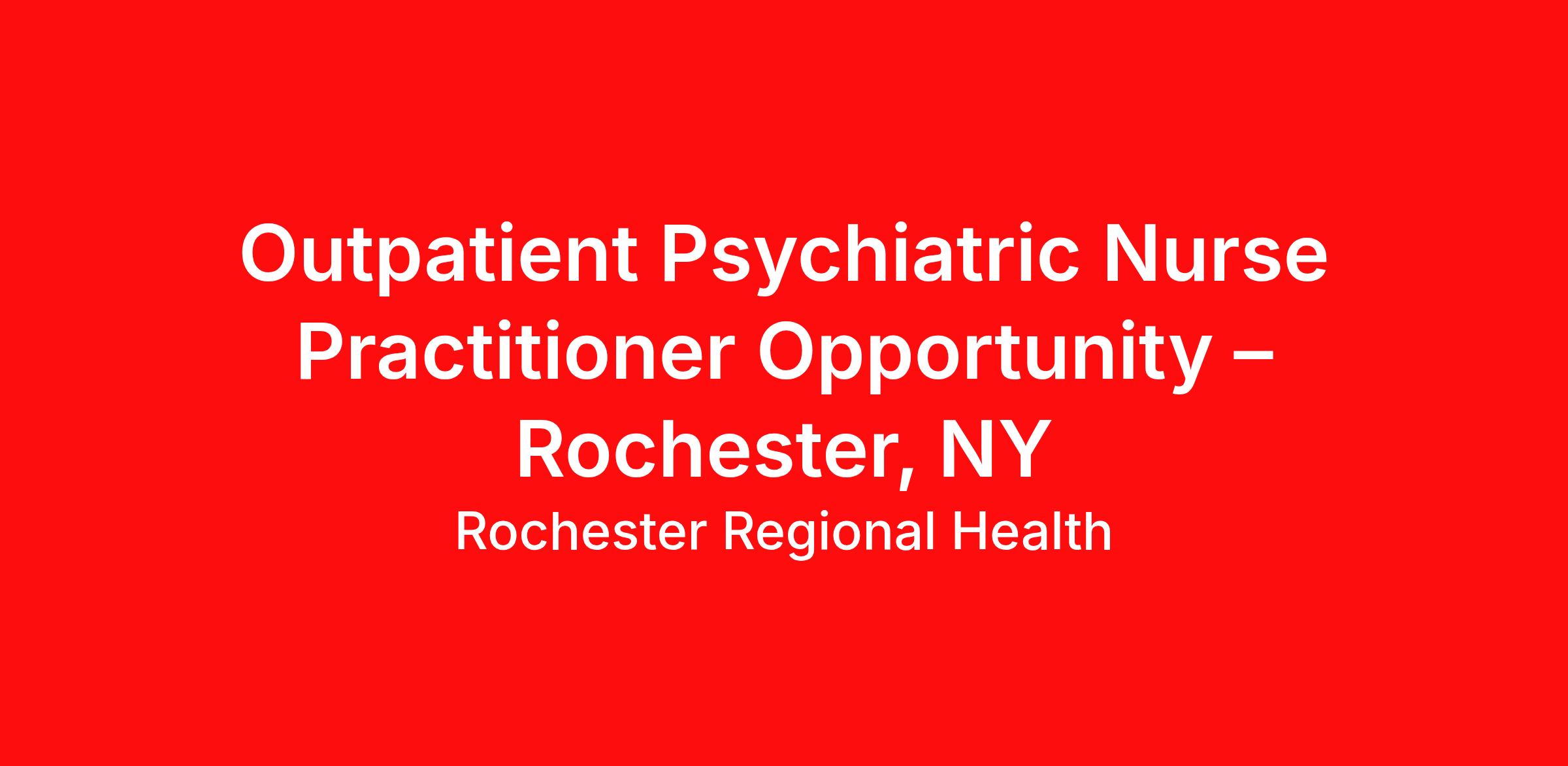 Provide assessment, care and treatment for psychiatric patients being treated for various diagnosis in an outpatient mental health setting. STATUS: Full-time LOCATION: Genesee Mental Health Center DEPARTMENT: Behavioral Health - Adult- Ambulatory SCHEDULE: Monday-Friday; Days RESPONSIBILITIES/ATTRIBUTES At least two years of NP experience preferred Experience with SMI population preferred Critical thinking skills, decisive judgment and the ability to work with minimal supervision Exceptional documentation skills and professional behavior Must be able to work in a stressful environment and take appropriate action OFFERINGS Lucrative compensation Paid malpractice with tail coverage Relocation services 4 weeks of vacation, 1 week of CME Loan forgiveness Comprehensive health benefits PAY RANGE: $100,000.00 - $150,000.00 The listed base pay range is a good faith representation of current potential base pay for successful applicants. It may be modified in the future. Pay is determined by factors including experience, relevant qualifications, specialty, internal equity, location, and contracts. Rochester Regional Health is an integrated health system whose mission is to enhance the lives and preserve the health of families and communities throughout Western New York, the Finger Lakes region, and St. Lawrence County. We empower our APP’s to shape the future of medicine by doing remarkable work that makes a difference. Rochester Regional Health is an Equal Opportunity / Affirmative Action Employer. Minority/Female/Disability/Veteran