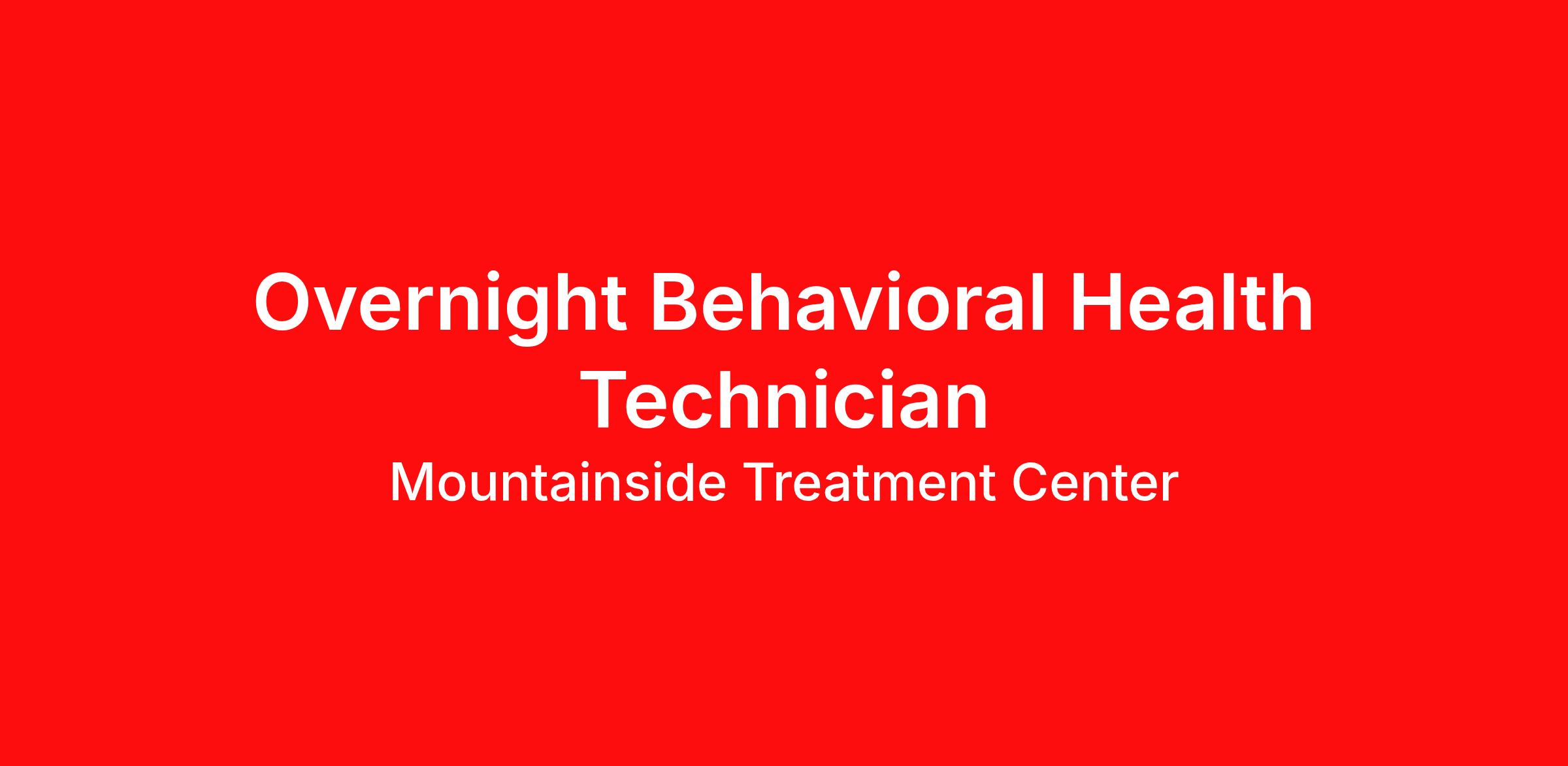 Are you a night owl who loves making a difference? Do you thrive in an environment where your calm, caring presence can help others feel safe and supported? Mountainside Treatment Center is looking for an Overnight Behavioral Health Technician to be the steady, welcoming light for our clients during the quiet hours. If you’re looking for a unique opportunity to make a real difference while working overnight in a supportive, mission-driven environment, apply today! Become part of Mountainside’s overnight team and help us deliver exceptional care around the clock.
