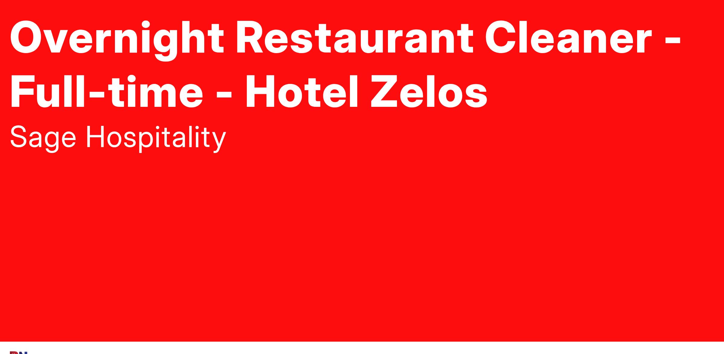 Dirty Habit en el Hotel Zelos busca un/a limpiador/a de restaurante nocturno/a a tiempo completo para unirse a nuestro equipo.¡ERES UNO!Como parte de Sage Hospitality Group, nos esforzamos con pasión por ser los mejores y crear excelencia en todo lo que hacemos. Creemos en enriquecer vidas, una experiencia a la vez. Más que un eslogan, empoderamos a nuestros empleados para que generen un impacto positivo en las comunidades donde vivimos y trabajamos. Al brindar un servicio genuino, construimos relaciones con nuestros huéspedes y valor para nuestros accionistas, creando experiencias inolvidables.Buscamos personas con ideas independientes. Personas que aprovechen su espíritu emprendedor para romper con las ideas preconcebidas. No tememos forjar nuestro propio camino. Después de todo, es lo que hacen los líderes de la industria. Por eso, damos la bienvenida tanto a personas que asumen riesgos como a personas con espíritu creativo. Sea cual sea tu rol diario, Sage reconoce que tu éxito va más allá del trabajo que realizas; se trata de quién eres, por eso invertimos en tu crecimiento personal y profesional. ¡Esperamos que consideres unirte a nosotros!