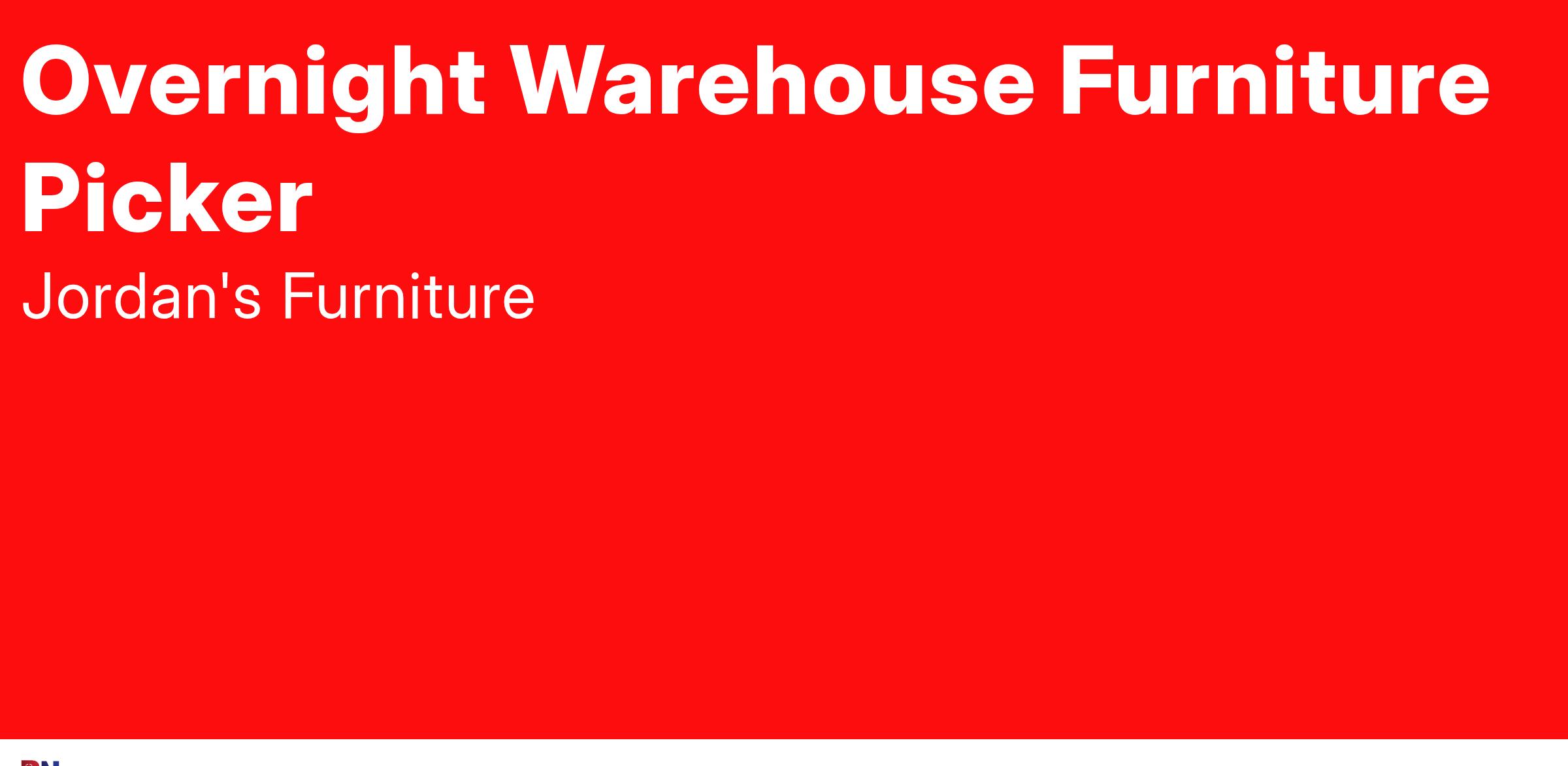 Not a morning person? Need a better schedule that works for your family? Come spend your nights at Jordan’s busy distribution center. In this warehouse job you will be using an order picker to pick furniture from a racking system and offloading pieces into staging locations. No equipment experience? We’ve got you covered! Jordan’s provides valuable on the job training. Jordan's has budgeted the compensation for new hire employees in this position will range from $19.50 to $20.50. This position will also receive a $3/hour shift differential. The schedule for this position is Sunday – Thursday, 9:00 pm to 5:30 am.