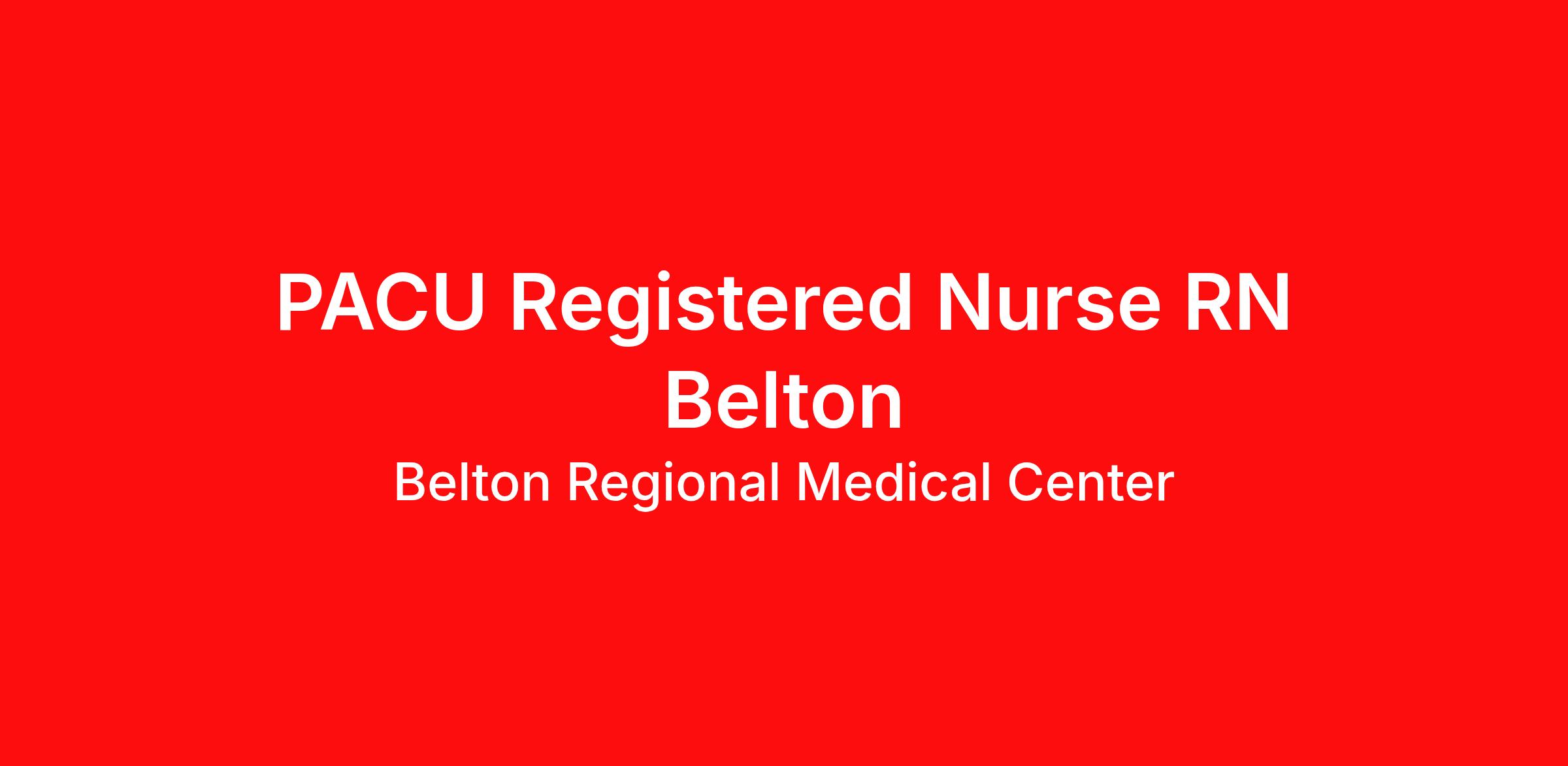 Stroke response times nearly half of the national average. Cutting-edge SPOT Technology that detects sepsis earlier than the human eye. An Enhanced Surgical Recovery program that reduces opioid prescriptions and post-surgical readmissions. As a national learning health system, we're transforming care delivery, advancing clinical outcomes, and empowering our nursing teams in a collaborative effort to give people a healthier tomorrow. Join us! At Belton Regional Medical Center, our nurses play a vital part. We know that every nurse’s path and purpose is unique. Do you want to create your own personal career path in nursing? HCA Healthcare is your career destination! Our scale makes it possible for nurses to create the career path that fits their life – for life – and empowers their passion for patient care. Apply today for our PACU Registered Nurse RN opportunity. Job Summary and Qualifications As a PACU Registered Nurse, you will play a critical role in the immediate post-operative care of surgical patients. Your responsibilities will include managing airway support, closely monitoring neurological and cardiac status, and responding promptly to any complications or side effects. You will provide initial wound care to the patients’ surgical site and ensure patient stability during recovery. You will collaborate with the surgical and anesthesia team. This role includes on-call availability during select non-business hours which will be discussed in the interview. Position Details: Self/Preferential Scheduling posted four weeks in advance Supportive, visible leadership that promotes a collaborative, respectful team culture where nurses are empowered to ask questions, seek help, and provide valuable input Staffing Support from Certified Nurse Assistance, Patient Care Techs, Charge Nurses, and an RN float pool internal to HCA Healthcare that is available as a staffing resource as needed Rounding with unit leaders, including charge nurses, to ensure your voice is heard on suggestions for patient care What you will do in this role: Deliver high-quality, patient-centered care while managing evidence-based practices and continuous improvement initiatives Be an integral member of a dynamic interdisciplinary team – consisting of the provider(s), therapy, and more. Consistently apply the nursing process, critical thinking skills, scientific judgment, technical skills and leadership to independently deliver safe nursing care to patients Assess patient condition, monitor throughout your shift, and document changes in patient condition along with the care provided thoroughly Educate patients and families/caregivers about the patient’s medical condition, treatment and follow-up measures What qualifications you will need: Advanced Cardiac Life Support must be obtained within 90 days of employment start date Basic Cardiac Life Support PALS Pediatric Adv Life Supt must be obtained within 6 months of employment start date (RN) Registered Nurse Associate Degree, or Bachelors Degree Benefits Belton Regional Medical Center, offers a total rewards package that supports the health, life, career and retirement of our colleagues. The available plans and programs include: Comprehensive benefits for medical, prescription drug, dental, vision, behavioral health and telemedicine services Wellbeing support, including free counseling and referral services Time away from work programs for paid time off, paid family leave, long- and short-term disability coverage and leaves of absence Savings and retirement resources , including a 401(k) Plan with a 100% match on 3% to 9% of pay (based on years of service), Employee Stock Purchase Plan, flexible spending accounts, preferred banking partnerships, retirement readiness tools, rollover support and financial wellbeing counseling Education support through tuition assistance, student loan assistance, certification support, dependent scholarships and a partnership with Galen College of Nursing Additional benefits for fertility and family building, adoption assistance, life insurance, supplemental health protection plans, auto and home insurance, legal counseling, identity theft protection and consumer discounts Learn more about Employee Benefits Note: Eligibility for benefits may vary by location. Belton Regional Medical Center is an 80 bed acute care facility. We are located in Belton and serve southern Jackson and northern Cass counties. We are one of 10 HCA Healthcare Midwest Health System hospitals in Kansas City. We offer a full range of inpatient and outpatient services. Our services are supported by our excellent colleagues, advanced technology, and deep relationships within the community. Over the past decade, our hospital underwent a $39.2 million dollar renovation and expansion project. This project has enabled us to meet the growing medical needs of our community. Our hospital is equipped with a beautiful memorial garden, patient advocates, and private rooms. We are recognized by The Joint Commission, American College of Radiology, and College of American Pathologists Laboratory Accreditation Program. HCA Healthcare has been recognized as one of the World’s Most Ethical Companies® by the Ethisphere Institute more than ten times. In recent years, HCA Healthcare spent an estimated $3.7 billion in cost for the delivery of charitable care, uninsured discounts, and other uncompensated expenses. "The great hospitals will always put the patient and the patient's family first, and the really great institutions will provide care with warmth, compassion, and dignity for the individual."- Dr. Thomas Frist, Sr. HCA Healthcare Co-Founder Join a family that cares about every stage in your career! We are interviewing candidates for our PACU Registered Nurse RN opening. Apply today and a member of our Talent Acquisition team will reach out. We are an equal opportunity employer. We do not discriminate on the basis of race, religion, color, national origin, gender, sexual 