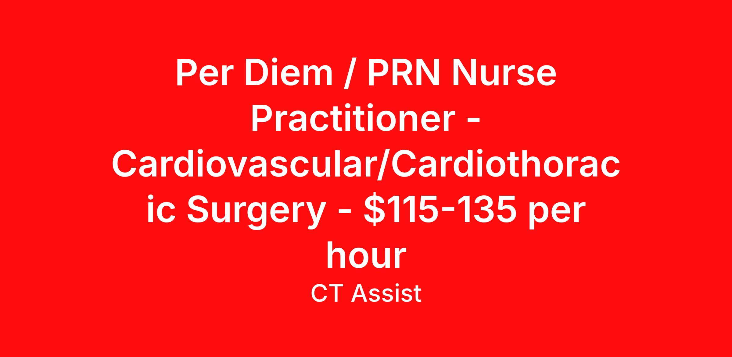 Per Diem / PRN Nurse Practitioner - Cardiovascular/Cardiothoracic Surgery - $115-135 per hour