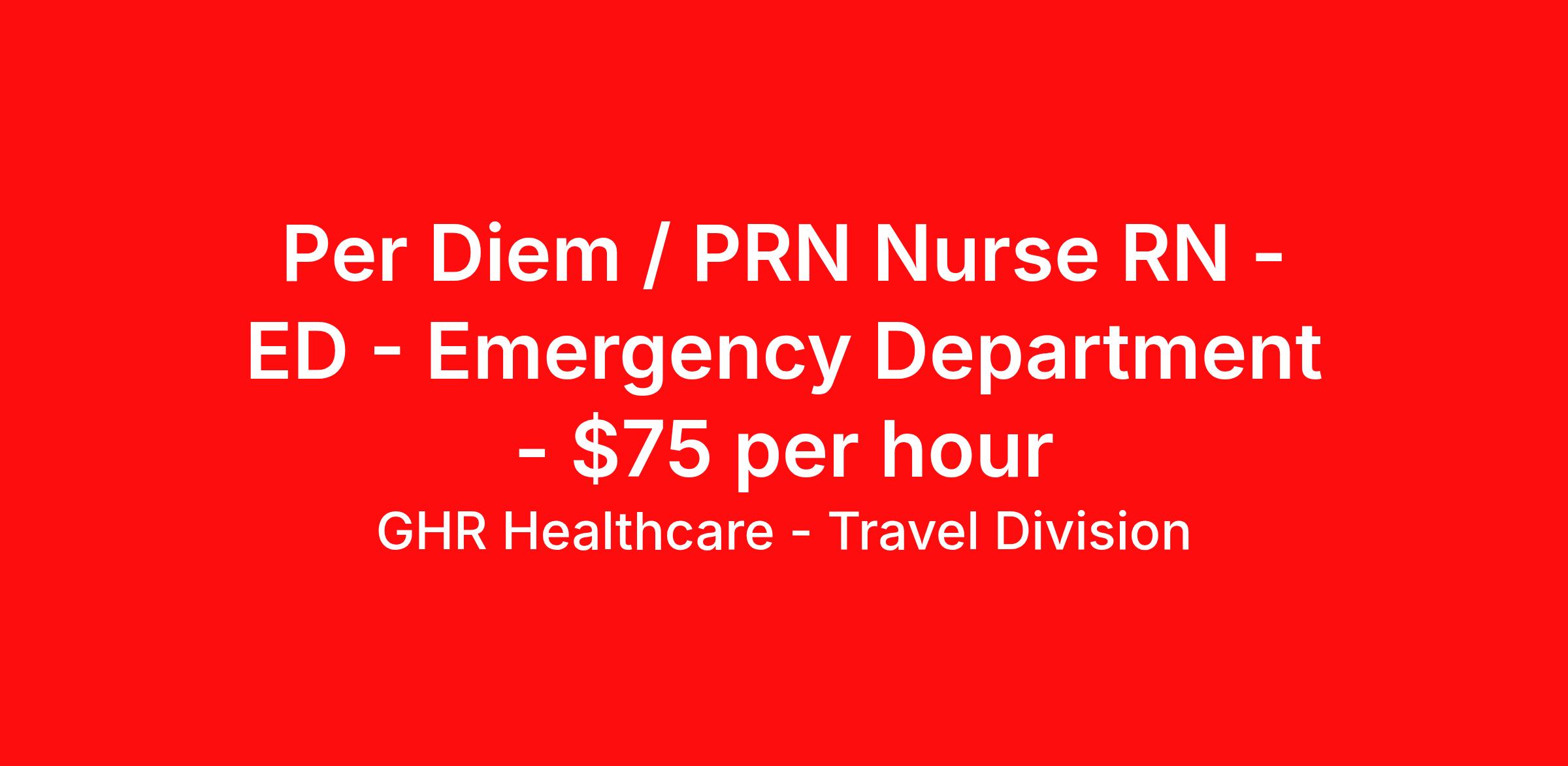 Per Diem / PRN Nurse RN - ED - Emergency Department - $75 per hour