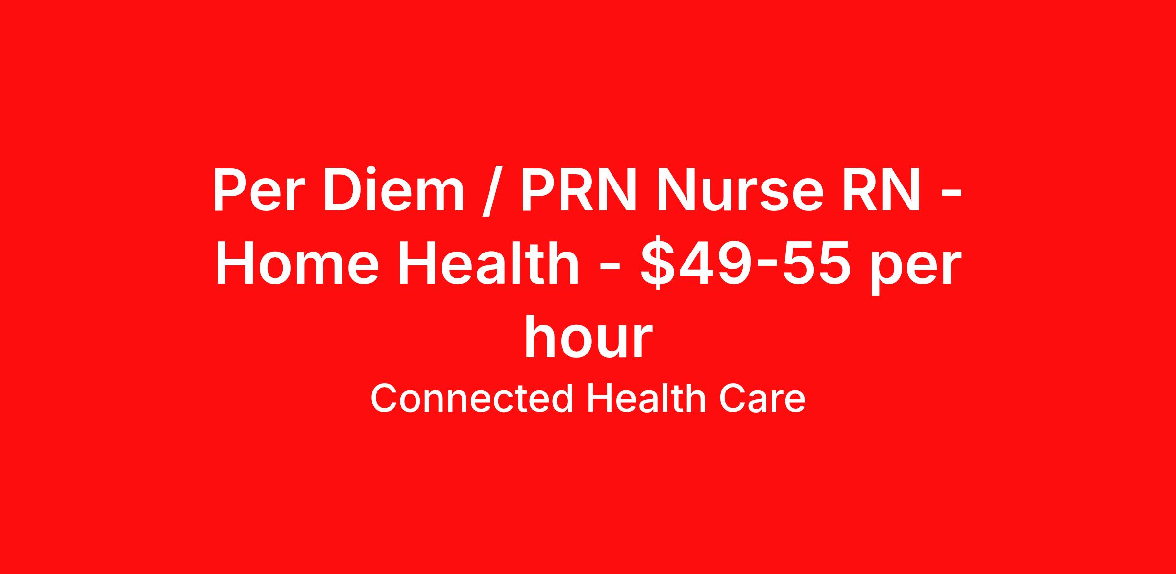 Connected Health Care is seeking a per diem / prn nurse RN Home Health for a per diem / prn nursing job in Whiteland, Indiana. Job Description & Requirements Specialty: Home Health Discipline: RN Duration: Ongoing Shift: 10 hours, days Employment Type: Per Diem Job Title: Registered Nurse (RN) – Homebound Student Support Position Type: Part-Time Hours Per Week: Approximately 10 hours Schedule: Hours vary slightly by day Student receives 1–3 hours of homebound instruction per session due to medical needs Schedule will be coordinated based on the student’s instructional schedule Position Overview: We are seeking a Registered Nurse (RN) to provide medical support for a student receiving homebound instruction while accessing school virtually. The RN will monitor the student during instructional sessions and provide medical assistance as needed to ensure a safe learning environment. An Instructional Assistant will be present to support the student’s academic access while participating in virtual learning. The RN will focus on the student’s medical monitoring and care needs during this time. Key Responsibilities: Monitor the student during virtual instructional sessions Assist with medication administration as needed Provide support for G-tube feedings Address any additional medical concerns that arise during instruction time Collaborate with the instructional assistant to support a safe learning environment Requirements: Active Registered Nurse (RN) license in the state Experience with G-tube feeding Ability to monitor and respond to student medical needs in a homebound setting About Connected Health Care Connected Health Care is a nationally recognized healthcare recruiting and staffing agency specializing in travel nursing, travel allied health, interim leadership, per-diem staffing, and permanent placement. Our team of professional account managers, recruits, and credentialists are focused on providing you with the most fulfilling career path that aligns with your personal goals, whether you are traveling with us for a season or looking for a permanent place to call home. Benefits Weekly pay Holiday Pay Guaranteed Hours Continuing Education 401k retirement plan Company provided housing options Cancelation protection Mileage reimbursement Referral bonus Employee assistance programs Medical benefits Dental benefits Vision benefits Benefits start day 1 License and certification reimbursement