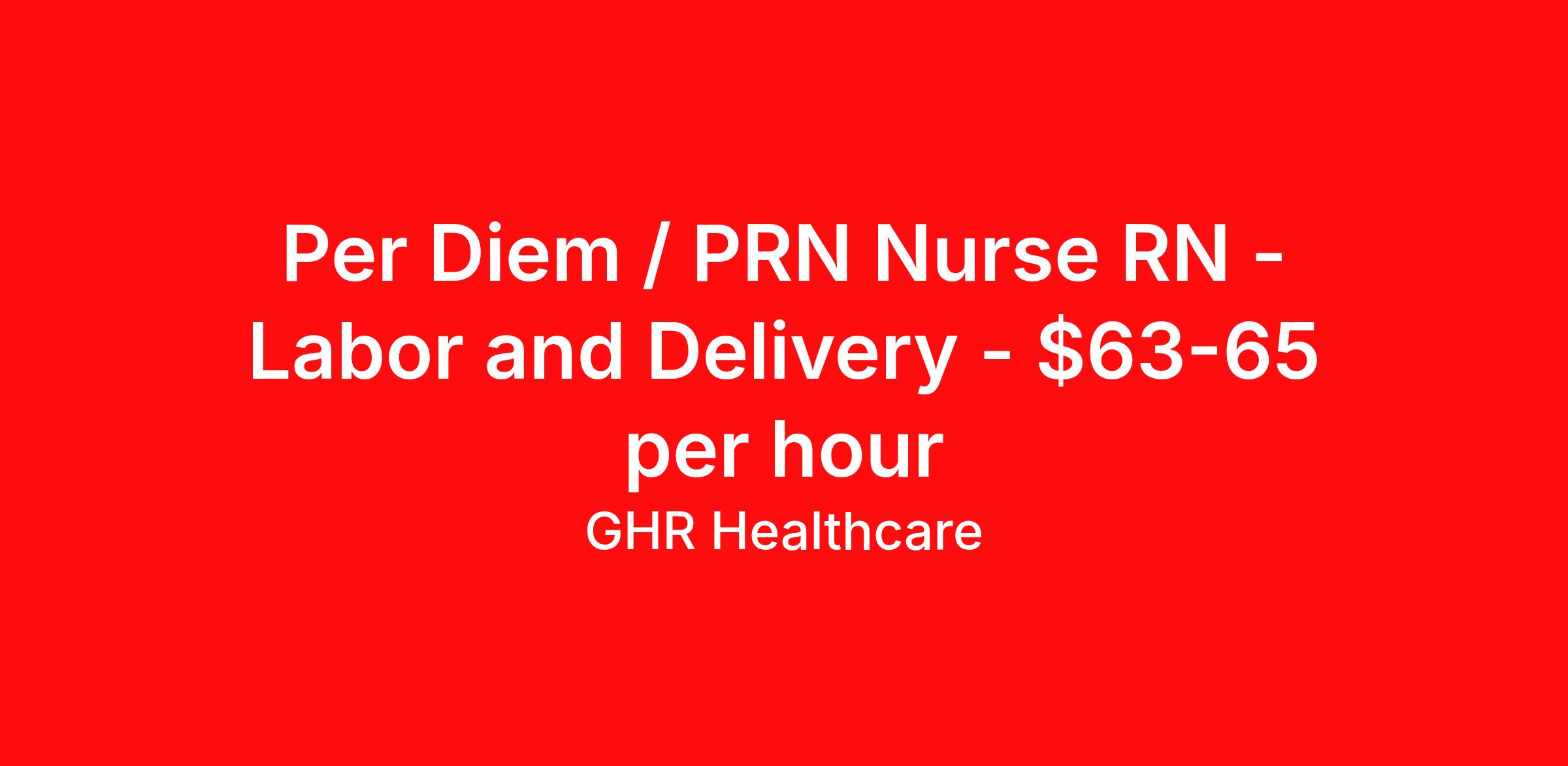 Per Diem / PRN Nurse RN - Labor and Delivery - $63-65 per hour