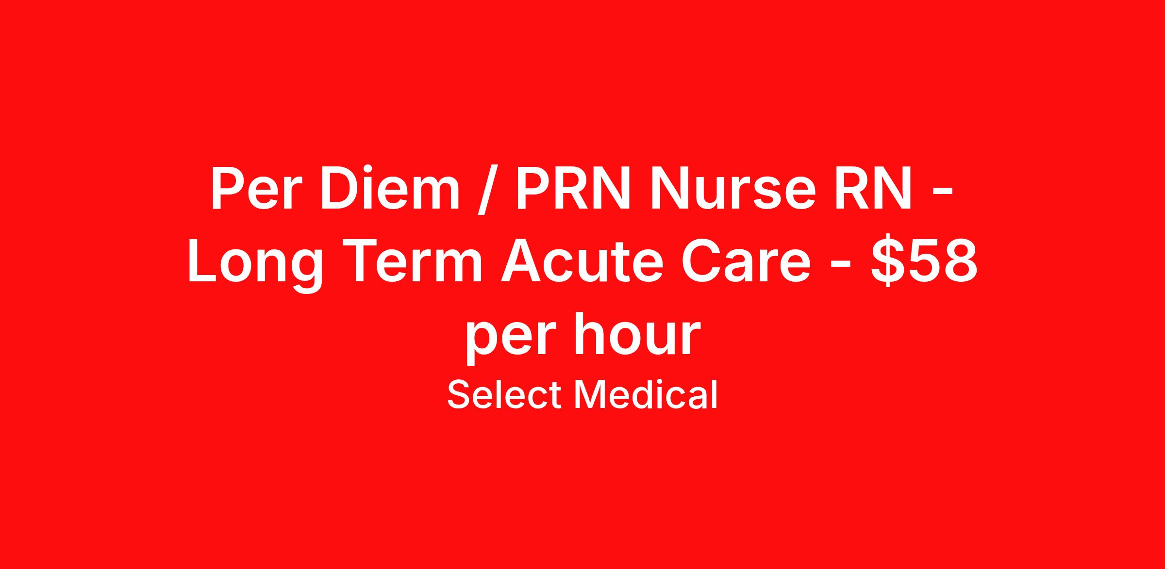 Per Diem / PRN Nurse RN - Long Term Acute Care - $58 per hour