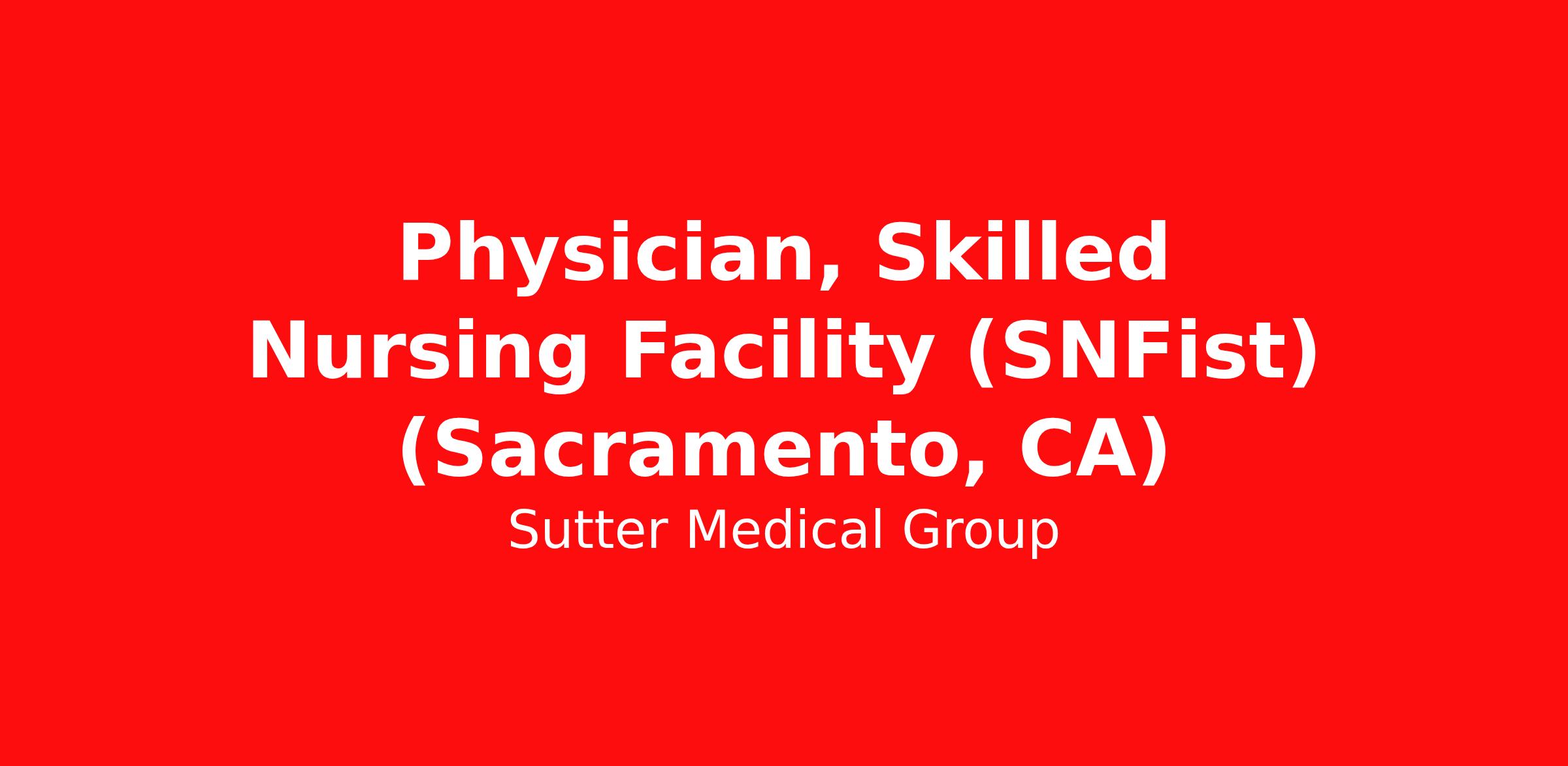 Opportunity Information Sutter Medical Group is seeking a dedicated and compassionate Skilled Nursing Facility Physician to join our post-acute care team. This position focuses on providing high-quality, patient-centered medical care to patients residing in skilled nursing and rehabilitation facilities. The ideal candidate will have experience managing medically complex, post-acute, and long-term care patients, with a strong commitment to continuity of care, interdisciplinary collaboration, and optimizing patient outcomes during transitions of care. Responsibilities: Provide comprehensive medical assessments and ongoing management for patients admitted to skilled nursing facilities for post-acute, rehabilitative, and long-term care. Manage and coordinate treatment for patients with multiple chronic illnesses, acute conditions, and complex medication regimens. Conduct daily or scheduled rounds in assigned SNFs, ensuring timely evaluation and management of acute changes in condition. Collaborate closely with facility staff, nursing teams, rehabilitation specialists, social workers, and case managers to deliver coordinated, patient-centered care. Communicate effectively with families, caregivers, and facility staff regarding patient goals, treatment plans, and care transitions. Ensure compliance with all SNF regulations, documentation standards, and quality measures, including participation in care plan meetings and facility quality improvement initiatives. Partner with hospitalists, primary care physicians, and specialists to support smooth transitions of care and reduce hospital readmissions. Participate in quality improvement, population health, and value-based care initiatives related to post-acute and long-term care. Maintain accurate and timely documentation in the electronic medical record (EMR) system in accordance with Sutter Medical Group and regulatory requirements. Qualifications Medical degree (MD or DO) from an accredited school of medicine. Board certification in Internal Medicine or Family Medicine (Geriatric Medicine certification preferred). Active and unrestricted medical license in California. Demonstrated experience in post-acute, skilled nursing, long-term care, or geriatric settings. Strong clinical skills in managing complex, multi-morbid patients. Excellent communication and interpersonal skills, with a patient- and team-centered approach. Ability to work effectively in an interdisciplinary, facility-based environment. Proficiency in electronic medical records (EMR) systems. Preferred Qualifications: Fellowship training in Geriatric Medicine or experience in post-acute/rehabilitation medicine. Knowledge of CMS regulations, SNF billing and documentation requirements, and quality metrics. Experience participating in value-based care or population health programs. Join Us and Enjoy Flexible schedule & practice autonomy Sign-on bonus Relocation assistance Excellent benefits, including zero-cost medical insurance Paid medical benefits for employees and dependents Award-winning, 100% 401(k) match, plus profit sharing Qualifies for PSLF CME allowance A positive work-life balance and Northern California's natural beauty and lifestyle Organization Details Sutter Medical Group (SMG) is a vibrant and talented community committed to delivering safe, affordable and high-quality care. Our multi-specialty medical group is comprised of over 1,600 clinicians practicing in seven counties in northern California, most within a 50-mile radius of Sacramento. SMG contains primary care and specialty Physicians and Advanced Practice Clinicians nurse practitioners, physician assistants, certified nurse midwives, licensed clinical social workers and licensed marriage and family therapists, who make up about 20% of our group. Our clinicians not only excel in clinical practice but are also actively engaged in teaching, research, leadership, community outreach, and volunteer work. SMG has earned both local and national recognition for excellence in patient care and experience. Community Information Sacramento, the capital city of California, offers an exceptional quality of life that makes it a great place to live. One of the standout features of Sacramento is its vibrant food scene. Known as the "Farm-to-Fork Capital," the city boasts a plethora of restaurants, farmers' markets, and food festivals that celebrate fresh, locally sourced ingredients. This culinary richness is complemented by a strong sense of community, where residents enjoy a variety of local events, cultural festivals, and community activities that foster a warm and inclusive atmosphere. Additionally, Sacramento's strategic location provides easy access to some of California's most popular destinations. Just a short drive away, you can find yourself in the bustling city of San Francisco, enjoying the world-class wine country of Napa Valley, or experiencing the stunning natural beauty of Lake Tahoe, which offers both winter sports and summer recreational activities. The city's proximity to diverse landscapes means residents can easily enjoy the snow-capped mountains, scenic coastlines, and lush forests. Sports enthusiasts in Sacramento also have much to cheer about. The city is home to the Sacramento Kings, an NBA team that brings exciting basketball action to the Golden 1 Center. Moreover, the recent relocation of the Oakland A's to Sacramento has added another layer of excitement for baseball fans. With its rich cultural scene, convenient location, and passionate sports culture, Sacramento truly stands out as a dynamic and desirable place to live. Equal Opportunity Statement It is the policy of Sutter Health and its partners to provide equal employment for all qualified individuals; to prohibit discrimination in employment because of basis of race, color, creed, religion, marital status, sexual orientation, registered domestic partner status, sex, gender, gender identity or expression, ancestry, national origin (including posse