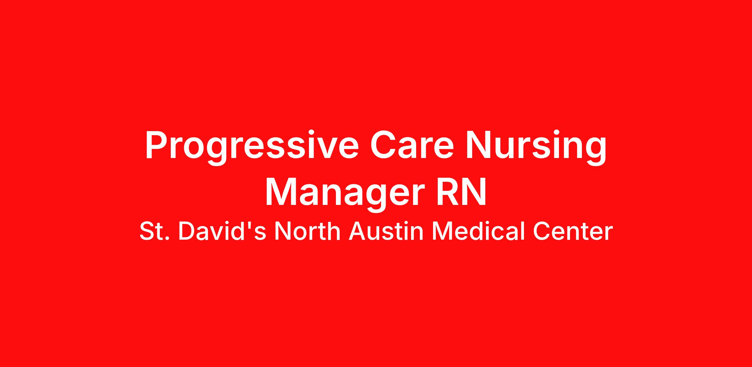 Introduction We are seeking a(an) Progressive Care Manager RN with St. David's North Austin Medical Center to promote growth and unlock possibilities. At HCA Healthcare, we are committed to the care and improvement of human life. Share your leadership skills and come make a difference with us! Benefits This position is eligible for a sign-on bonus of up to $15,000! St. David's North Austin Medical Center, offers a total rewards package that supports the health, life, career and retirement of our colleagues. The available plans and programs include: Comprehensive medical coverage that covers many common services at no cost or for a low copay. Plans include prescription drug and behavioral health coverage as well as free telemedicine services and free AirMed medical transportation. Additional options for dental and vision benefits, life and disability coverage, flexible spending accounts, supplemental health protection plans (accident, critical illness, hospital indemnity), auto and home insurance, identity theft protection, legal counseling, long-term care coverage, moving assistance, pet insurance and more. Free counseling services and resources for emotional, physical and financial wellbeing 401(k) Plan with a 100% match on 3% to 9% of pay (based on years of service) Employee Stock Purchase Plan with 10% off HCA Healthcare stock Family support through fertility and family building benefits with Progyny and adoption assistance. Referral services for child, elder and pet care, home and auto repair, event planning and more Consumer discounts through Abenity and Consumer Discounts Retirement readiness, rollover assistance services and preferred banking partnerships Education assistance (tuition, student loan, certification support, dependent scholarships) Colleague recognition program Time Away From Work Program (paid time off, paid family leave, long- and short-term disability coverage and leaves of absence) Employee Health Assistance Fund that offers free employee-only coverage to full-time and part-time colleagues based on income. Learn more about Employee Benefits Note: Eligibility for benefits may vary by location. We are seeking a(an) Progressive Care Manager RN for our team to be an innovator. HCA Healthcare partners with Harvard Pilgrim Institute and the CDC to use our data from more than 26 million patient encounters each year to impact the industry. Come build your career with us! Job Summary and Qualifications The Manager ensures high quality, patient-centered care through oversight of the overall daily function and staffing of the unit/department. The Manager monitors and evaluates the provision of nursing care in accordance with established policies/procedures and holds staff accountable for quality and clinical outcomes in support of facility objectives. You will help create a superior clinical identity by operationalizing evidence-based practices to enhance patient safety and quality outcomes. Ensure adherence to standards of care. You will support efforts to reduce variation in clinical practice and improve efficiency, effectiveness, and cost. Ensure a culture of accountability and transparency in the provision of care. You will support the achievement of internal/external benchmarks, accreditations, and designations. You will ensure compliance with all policies, procedures, and regulatory standards. You will ensure equipment maintenance is performed regularly and according to regulatory and/or accreditation standards. You will manage admissions and discharge processes to ensure efficient throughput and high quality, patient-centered care. You will facilitate effective interdisciplinary care coordination within and across departments. Ensure staff with appropriate clinical competencies are assigned to meet patient care needs. You will provide leadership in attaining and sustaining an unparalleled patient experience. Instill accountability for providing consistent, positive patient interactions that differentiate the organization as a healthcare leader. You will review various feedback mechanisms and helps identify opportunities to improve customer/patient satisfaction. Supports the development and implementation of strategies to elevate the patient experience. You will leverage various feedback mechanisms to benchmark performance and identify opportunities to improve patient satisfaction. You will ensure compliance with evidence-based practices that enhance patient experience and customer service. You will collaborate with subject matter experts and other leaders to create an environment of teamwork that supports improved outcomes and service. You will identify development opportunities or training needs of individual employees and teams. What qualifications you will need: BSN required MSN preferred 1 year experience in healthcare required 1 year in supervisory role preferred Specialty Certification must be obtained within 6 months of hire Currently licensed as a registered professional nurse in the state(s) of practice and/or has an active compact license, accordance with law and regulation. FT/PT/PRN colleagues with a compact license from a state other than Texas must: · apply for Texas RN license within 60 days from hire · obtain current TX RN license within 6 months of application for TX RN license St. David’s North Austin Medical Center , part of St. David’s HealthCare, is a full-service medical center providing comprehensive medical care at two locations – St. David’s North Austin Medical Center and St. David’s Surgical Hospital . St. David’s North Austin Medical Center is a 460 bed, multi-specialty, acute care hospital. It provides advanced women’s health services, including maternity and newborn care with Level I, II, and III neonatal intensive care units (NICUs) at the nearby St. David’s Women’s Center of Texas . The hospital also offers minimally invasive gynecological surgery and comprehensive breast imaging through Solis Mammography, which is 