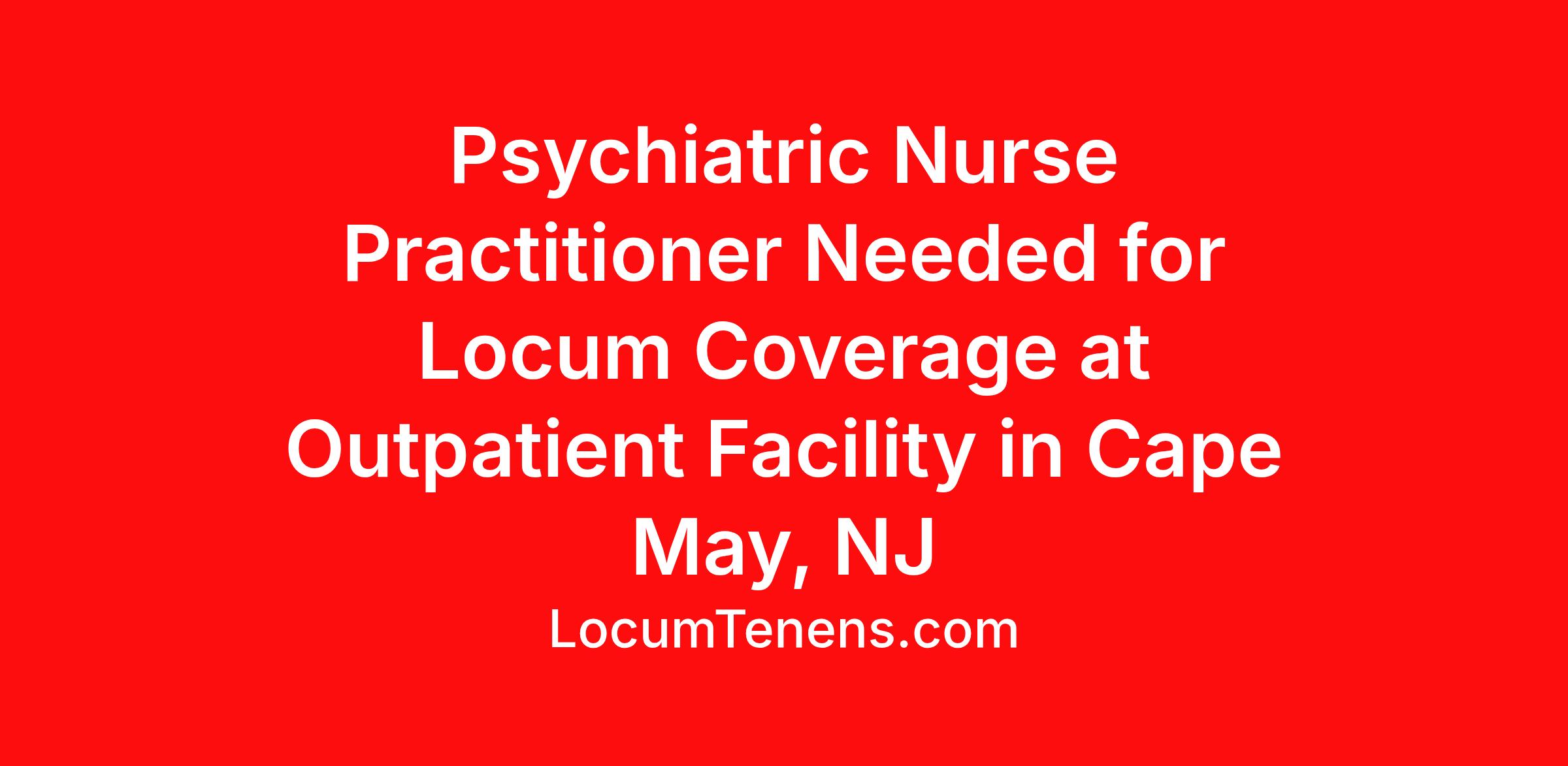 Psychiatric Nurse Practitioner Needed for Locum Coverage at Outpatient Facility in Cape May, NJ