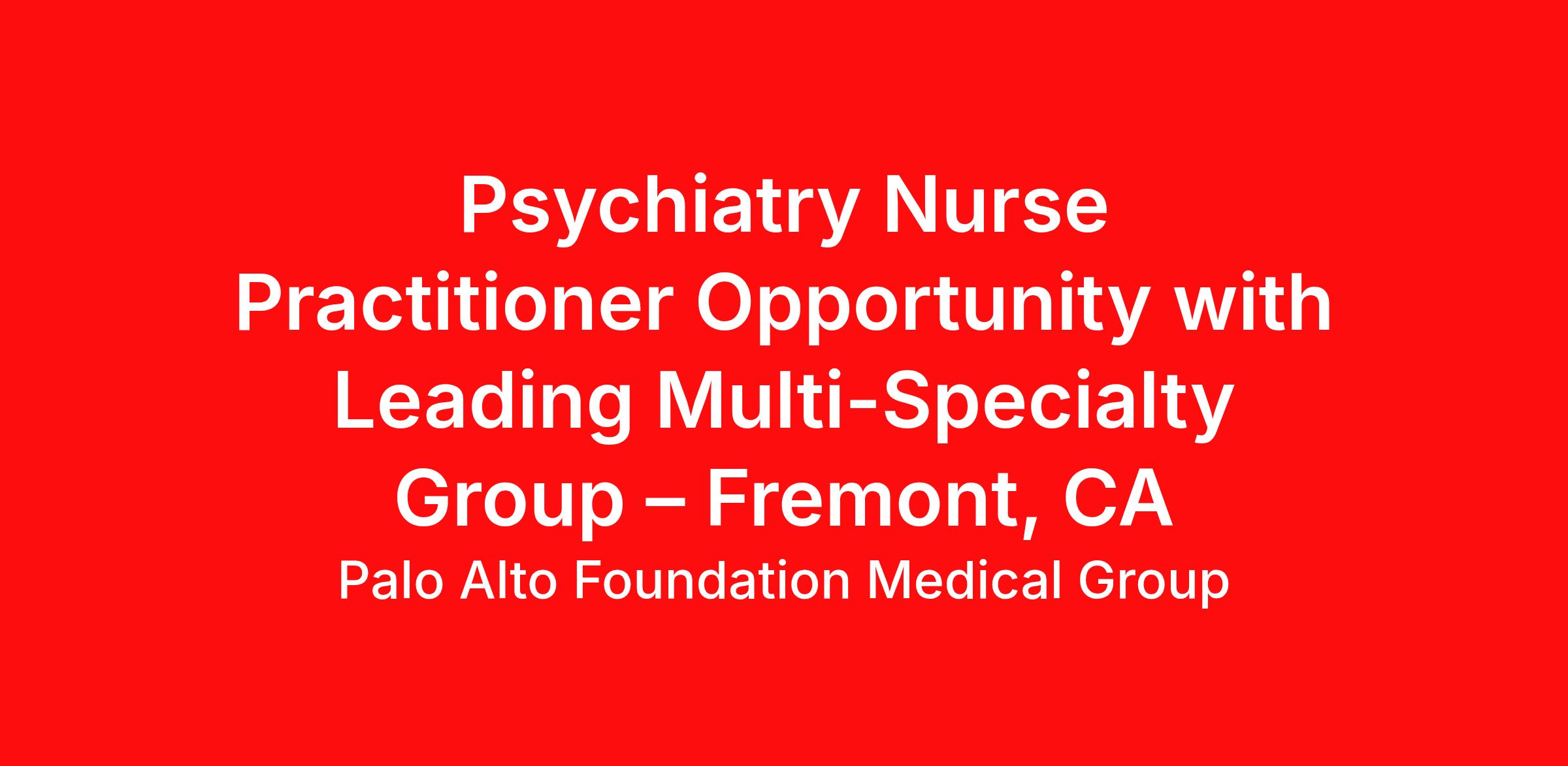 Palo Alto Foundation Medical Group (PAFMG) is seeking a full-time, certified Nurse Practitioner to join our Psychiatry team in Fremont, California. Position details : Resource-rich working environment Schedule designed to promote work/life balance with a hybrid schedule Collaborate with talented team of on-site primary care clinicians and medical specialists Requirements: 2 years of related clinical experience Experience working with children Current California State NP License Current Nurse Practitioner Furnishing Number Nurse Practitioner furnishing number of NP’s Active DEA registration We Offer / Join Us and Enjoy: Relocation allowance Generous benefits package 401K, cash-balance retirement plan, HAS Medical Group Details: Palo Alto Foundation Medical Group We are one of the largest multi-specialty medical groups in the country, made up of over 2,100 clinicians in 40 specialties, in practices throughout the San Francisco Bay Area. Our organization is nationally recognized for our excellence with multiple awards for quality of care, innovation, and leadership. Palo Alto Foundation Medical Group is affiliated with Palo Alto Medical Foundation, a not-for-profit health care organization, providing operational and administrative support, including the latest technology, allowing physicians to focus on delivering exceptional patient care. Community Information: Located on the southeast side of the San Francisco Bay, Fremont is the fourth most populous city in the San Francisco Bay Area, and California’s 15th largest city. It is the closest East Bay city to Silicon Valley. With its moderate climate and proximity to major universities, shopping areas, recreation and cultural activities, employment centers, major airports, and the Bay Area Rapid Transit (BART) system, Fremont captures metropolitan living at its best. It also offers rich cultural diversity and an ambience of tolerance and community unity. To apply, please visit: https://jobs.sutterhealthclinicians.org/job/fremont/physician-assistant-or-nurse-practitioner-psychiatry-fremont-ca/47704/84970478000
