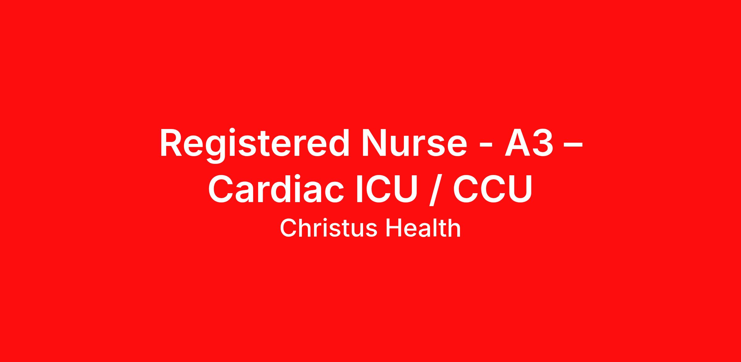 Registered Nurse - A3 – Cardiac ICU / CCU