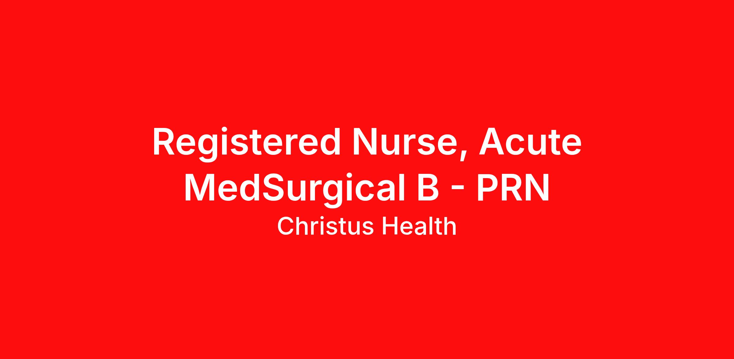 Description Come join our MedSurg team and try out our PRN Tier Plan. Flexible schedule that allows you to pick your rate! PRN - Tier Plan available - Flexible Schedule Tier 1: $40/hr for 6 shifts in a 6 week schedule Tier 2: $45/hr for 12 shifts in a 6 week schedule Tier 3: $50/hr for 18 shifts in a 6 week schedule Shift Differentials also apply for nights and weekends! Summary: The competent Nurse, in the same or similar clinical setting, practices independently and demonstrates an awareness of all relevant aspects of a situation. Provides routine and complex care, with the ability to on long-range goals or plans. Continues to develop the ability to cope with and manage contingencies of clinical nursing. Makes appropriate assignments and delegates to other care providers as a means to help manage the clinical situation. Responsibilities: Meets expectations of the applicable OneCHRISTUS Competencies: Leader of Self, Leader of Others, or Leader of Leaders. Consistent with the ANA Scope and Standards of Practice, provides nursing care utilizing the nursing process, including assessment, diagnosis, planning, intervention and evaluation for assigned patients. Addresses increasingly complex psychological, emotional, cultural, and social needs of patient and families in accordance with their level of practice. Using the appropriate protocol, administers medications and treatments; monitors for side-effects and effectiveness of the treatment prescribed. Documents patient history, symptoms, medication, and care given. Assess learning needs and provides education to patients, family members and/or care givers; identify issues and resources. Job Requirements: Education/Skills Bachelor of Science Degree in Nursing, preferred Experience 1 year of experience in the related nursing specialty preferred Licenses, Registrations, or Certifications BLS required RN License in state of employment or compact Work Schedule: 6AM - 6PM 12 HR Shift Work Type: Per Diem As Needed