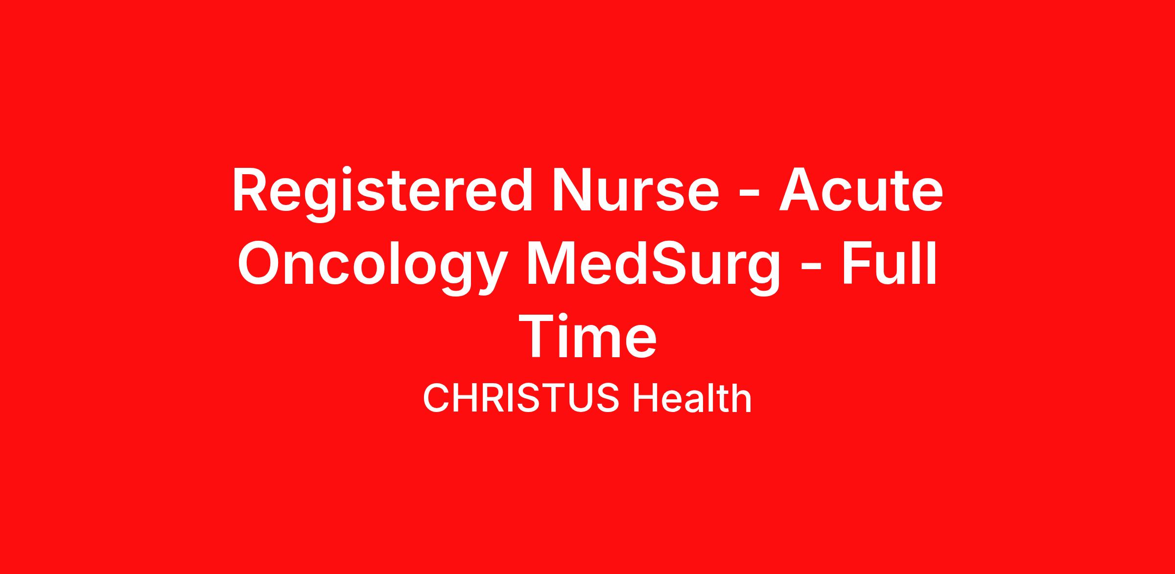 Registered Nurse - Acute Oncology MedSurg - Full Time