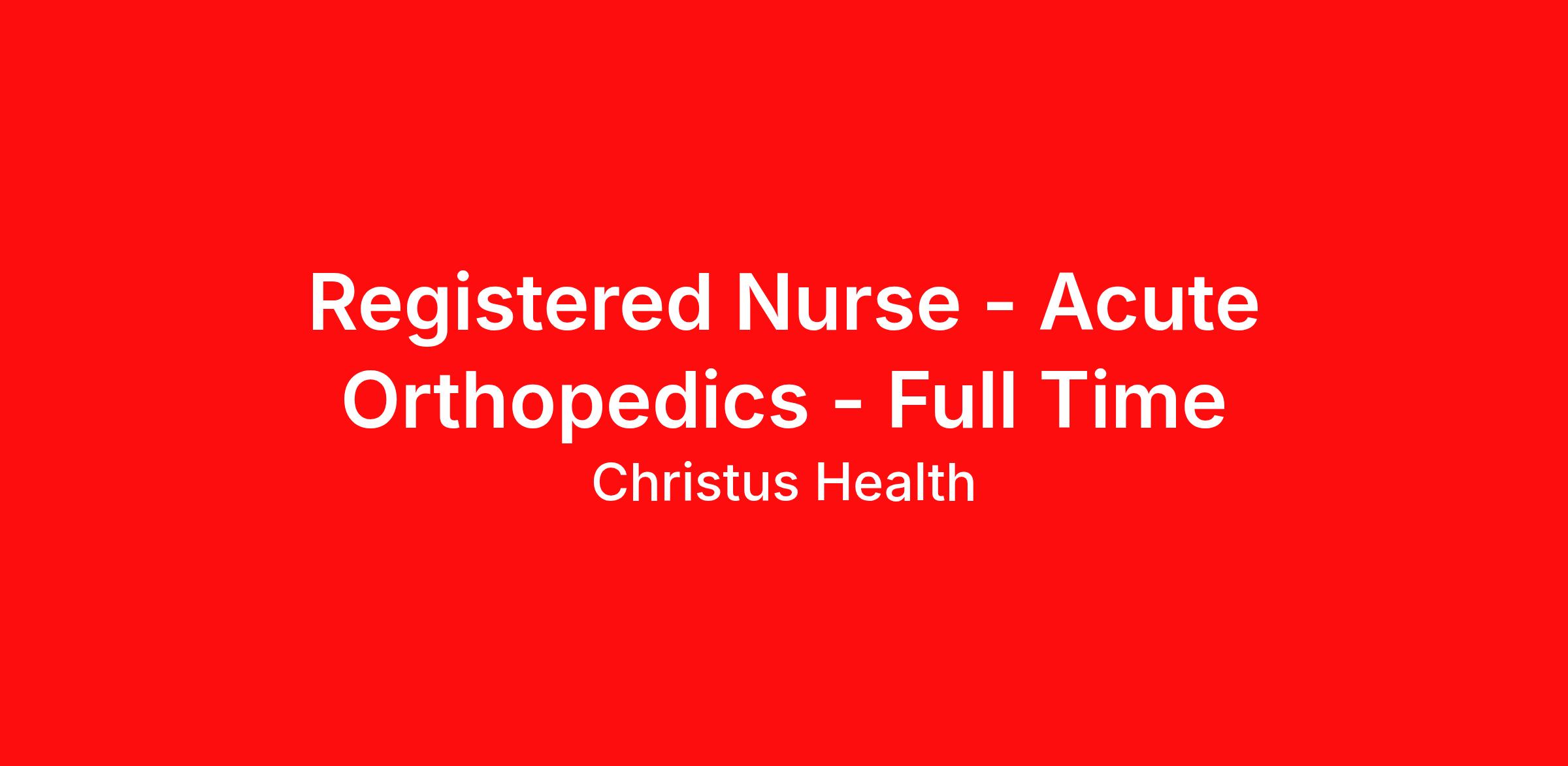 Registered Nurse - Acute Orthopedics - Full Time