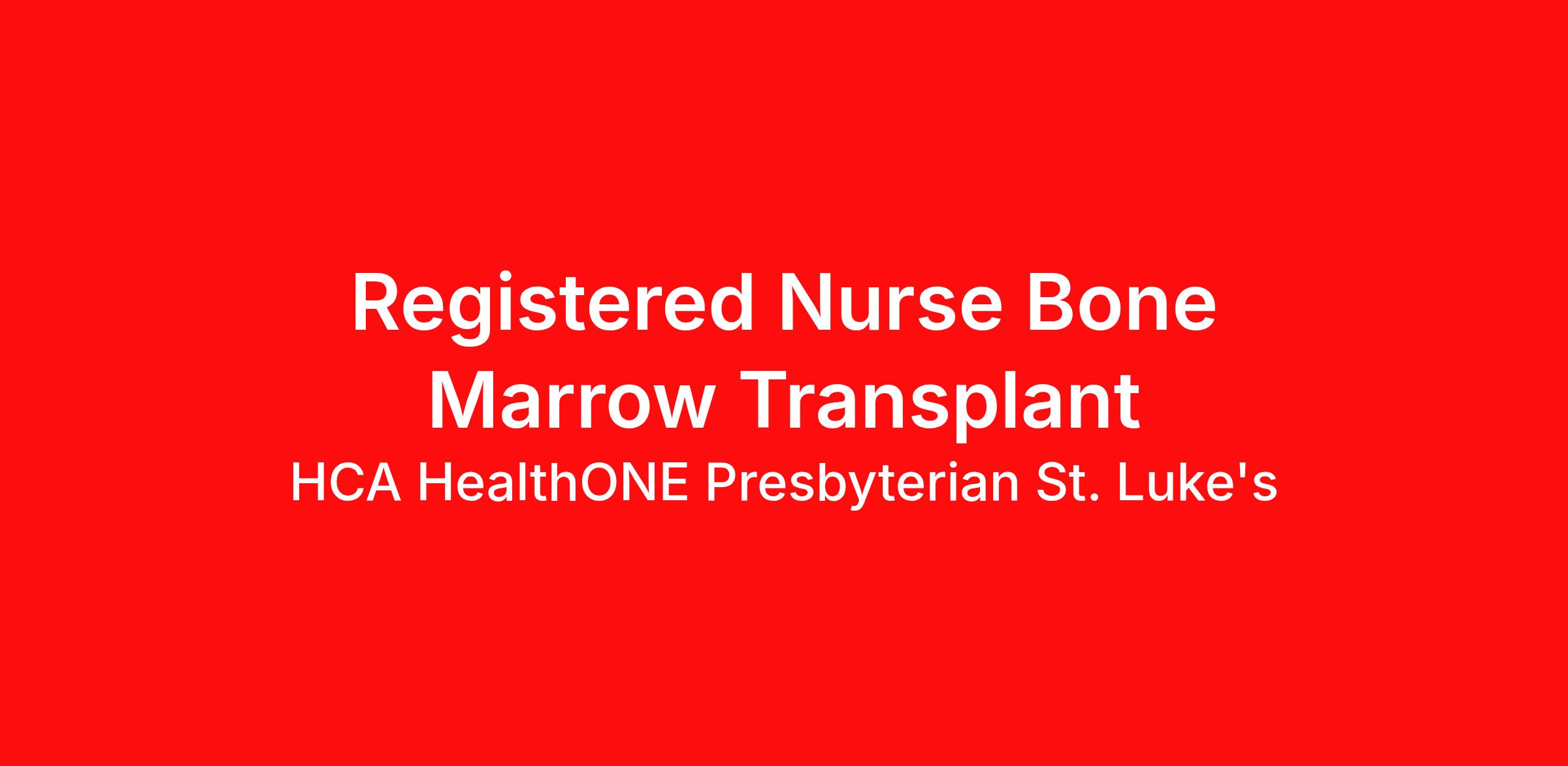 Hourly Wage Estimate: $36.50 - $55.25 / hour Learn more about the benefits offered for this job. The estimate displayed represents the typical wage range of candidates hired. Factors that may be used to determine your actual salary may include your specific skills, how many years of experience you have and comparison to other employees already in this role. The typical candidate is hired below midpoint of the range. *Now offering recently increased hourly rates for RNs Introduction HCA HealthONE Presbyterian St. Luke's is committed to investing in the latest technology enabling nurses to work more efficiently. Are you passionate about delivering patient-centered care? Submit your application for BMT Registered Nurse position and spend more time at the bedside with the patient. Benefits HCA HealthONE Presbyterian St. Luke's, offers a total rewards package that supports the health, life, career and retirement of our colleagues. The available plans and programs include: Comprehensive medical coverage that covers many common services at no cost or for a low copay. Plans include prescription drug and behavioral health coverage as well as free telemedicine services and free AirMed medical transportation. Additional options for dental and vision benefits, life and disability coverage, flexible spending accounts, supplemental health protection plans (accident, critical illness, hospital indemnity), auto and home insurance, identity theft protection, legal counseling, long-term care coverage, moving assistance, pet insurance and more. Free counseling services and resources for emotional, physical and financial wellbeing 401(k) Plan with a 100% match on 3% to 9% of pay (based on years of service) Employee Stock Purchase Plan with 10% off HCA Healthcare stock Family support through fertility and family building benefits with Progyny and adoption assistance. Referral services for child, elder and pet care, home and auto repair, event planning and more Consumer discounts through Abenity and Consumer Discounts Retirement readiness, rollover assistance services and preferred banking partnerships Education assistance (tuition, student loan, certification support, dependent scholarships) Colleague recognition program Time Away From Work Program (paid time off, paid family leave, long- and short-term disability coverage and leaves of absence) Employee Health Assistance Fund that offers free employee-only coverage to full-time and part-time colleagues based on income. Learn more about Employee Benefits Note: Eligibility for benefits may vary by location. You contribute to our success let us contribute to yours! Whether you choose to focus on bedside care, a leadership or C-suite role, shape business and operational outcomes, or work to deliver clinical excellence behind the scenes in data science, case management or transfer centers. Unlock your potential at HCA HealthONE Presbyterian St. Luke's! Job Summary and Qualifications This position supports the mission of Presbyterian/St Luke’s Medical Center of optimizing quality of life of all those served by expanding beyond the traditional focus on medical needs to the needs of the whole person. The BMT RN oversees and directs the care of the BMT/Oncology patient. The BMT RN is responsible for the care of blood and marrow transplant patients, patients with hematologic/oncologic disorders, patients with multisystem organ failure, and other patients meeting BMT admissions criteria. Serves as primary nurse leading the collaboration of all disciplines for well-coordinated patient care. Oversees and directs the care of assistive personnel, maintaining final accountability for the care given to assigned patients. Within the first year the RN will have gained basic BMT knowledge and skills. Between the first and second year the RN will have gained BMT critical care knowledge and skills. When the need arises, will perform other duties as assigned by supervisor. Position Requirements: Current licensure in the State of Colorado as a Registered Nurse, or current active multistate Registered Nurse license; BLS – Healthcare provider. ACLS required within 90 days. ONS Chemotherapy Provider Card required within 90 days. If the staff member is prn, they will not be required to have ONS Chemotherapy Provider Card because they will not have enough exposure to chemotherapy/biotherapy to maintain competency in this area. Graduate of an accredited school of nursing. BSN Preferred EKG interpretation competency or course within the first year of hire. One year experience in acute care preferred. HCA HealthONE, one of the largest and most comprehensive healthcare systems in the Rocky Mountain region, offers more than 170 care sites in the Denver metro area. Offering services across the continuum of care to meet patients’ total healthcare needs, HCA HealthONE includes seven acute care hospitals, a dedicated flagship pediatric hospital, a rehabilitation hospital, CareNow® urgent care clinics, mental health campuses, imaging and surgery centers, physician practices, home and hospice care, and AirLife Denver, which provides regional critical care air and ground transportation. Among HCA HealthONE’s acute care hospitals is Presbyterian/St. Luke’s (P/SL). P/SL has been meeting the healthcare needs of patients and their families from across the Rocky Mountain region for more than 140 years. Included on the P/SL campus is Rocky Mountain Children’s, a dedicated pediatric hospital, making the campus the only tertiary/quaternary combined pediatric and adult hospital in this region. P/SL is home to an award-winning cancer program including the Colorado Blood Cancer Institute, a solid organ transplant program, and complex orthopedics. Consistently among the Denver Business Journals’ list of top corporate philanthropists in the Denver-metro area, HCA HealthONE was named as one of the most community-minded organizations by The Civic 50 and contributed more than $1 million through cas